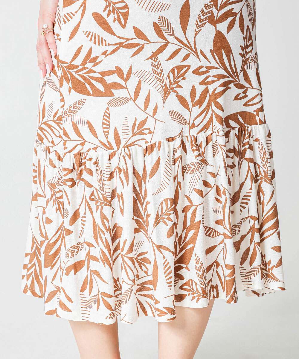 Saia Midi Feminina Estampa Folhas Babado Marisa