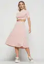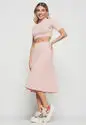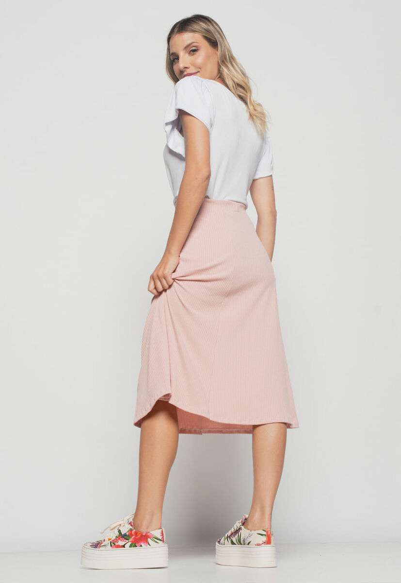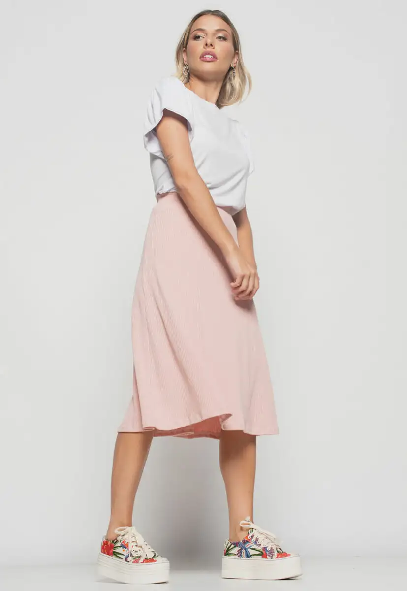 Saia Midi Godê Canelada Rosa Claro