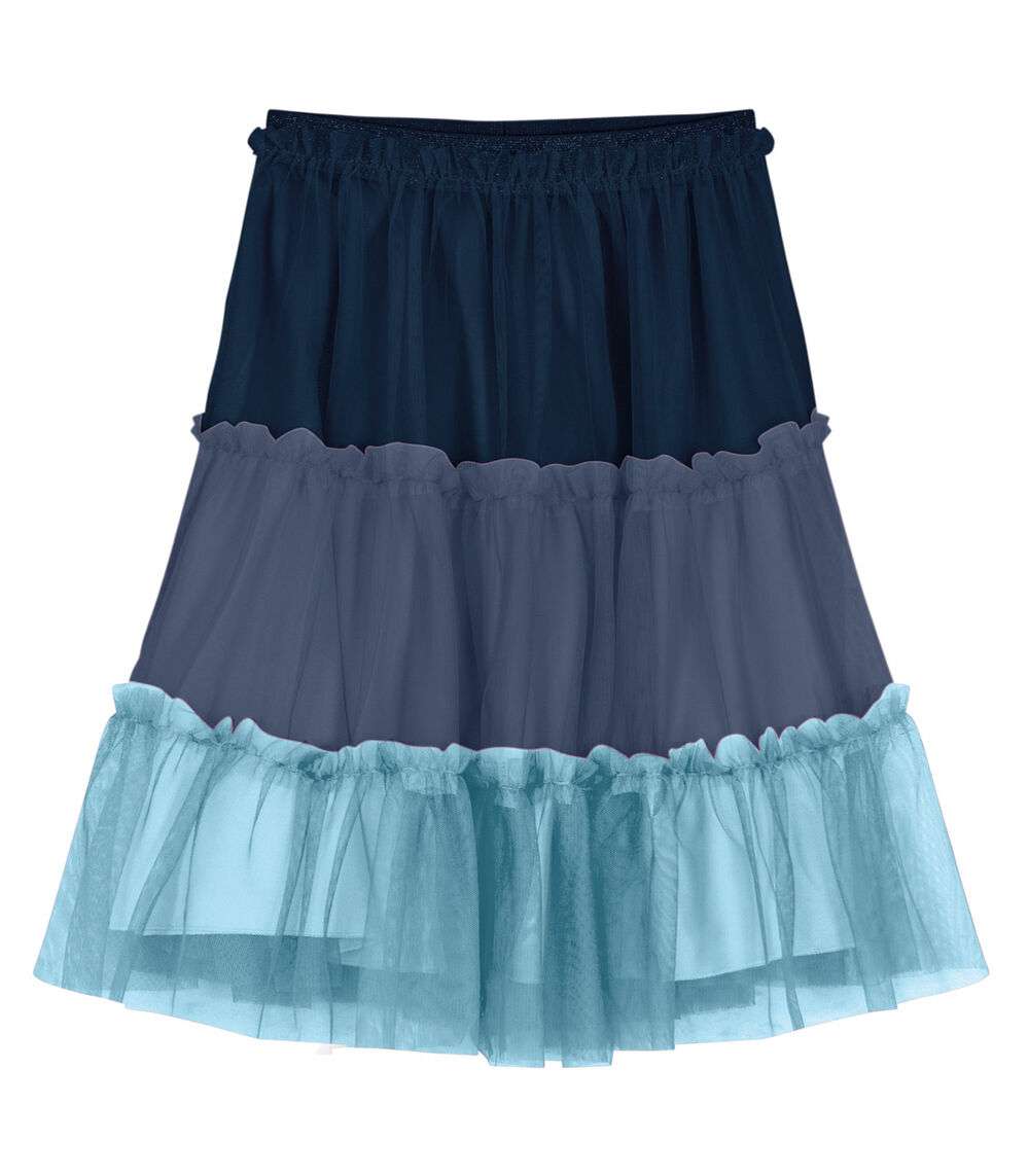 Saia Midi Infantil De Tule Com Babados Trick Nick Azul