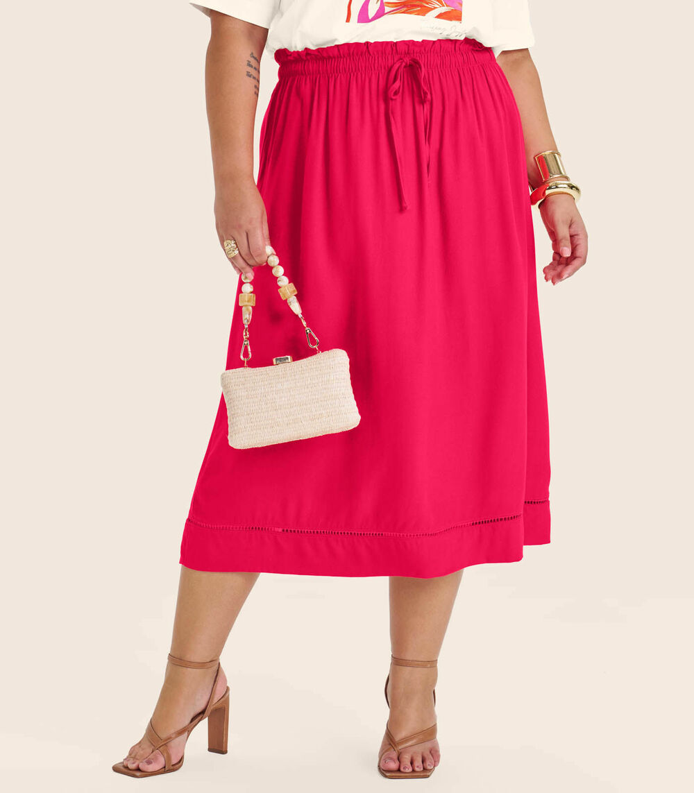 Saia Midi Plus Size em Viscose Secret Glam Vermelho