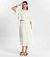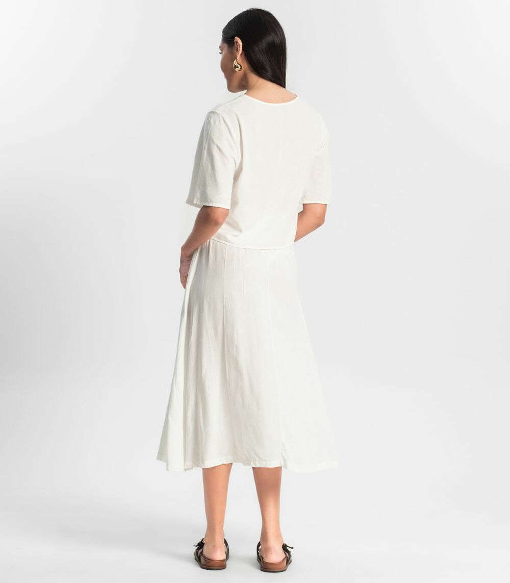 Saia Midi Viscose Maquinetada Bege