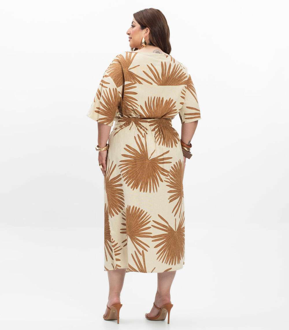Saia Super Midi Feminina Plus Size Secret Glam Bege