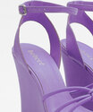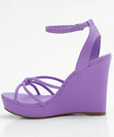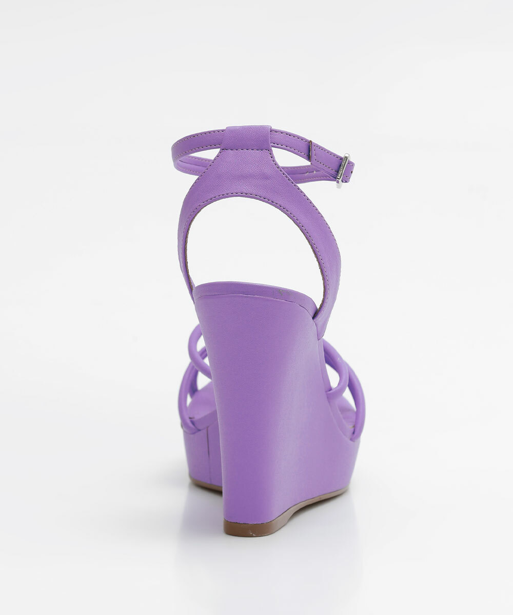 Sandália feminina, confeccionada em material sintético, salto alto plataforma, tiras no cabedal e fechamento por fivela.