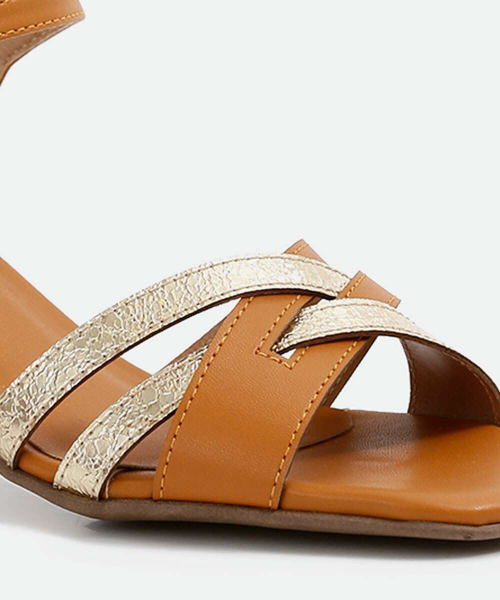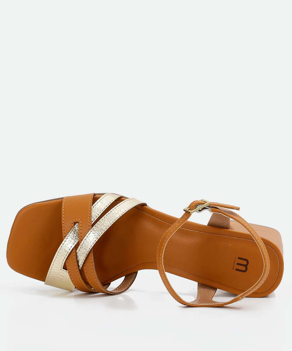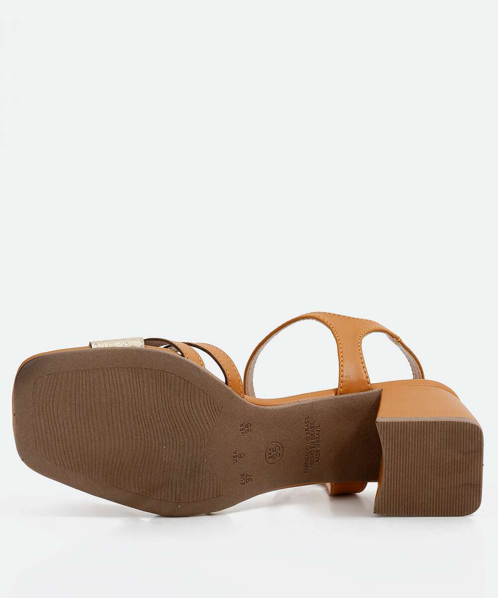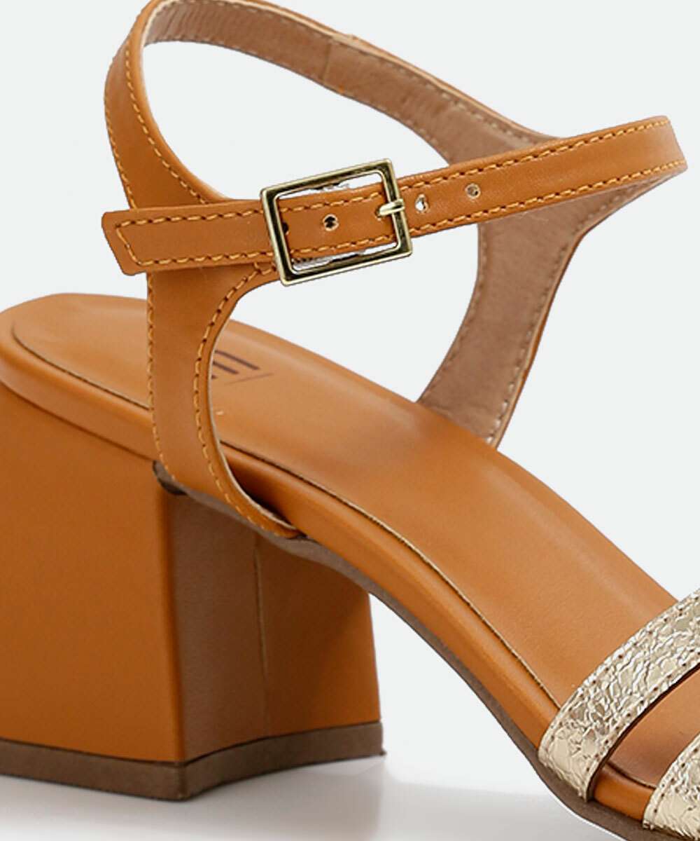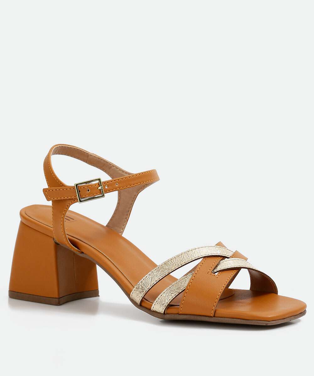 Detalhes adicionais: salto grosso, tiras metalizadas