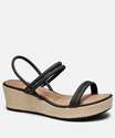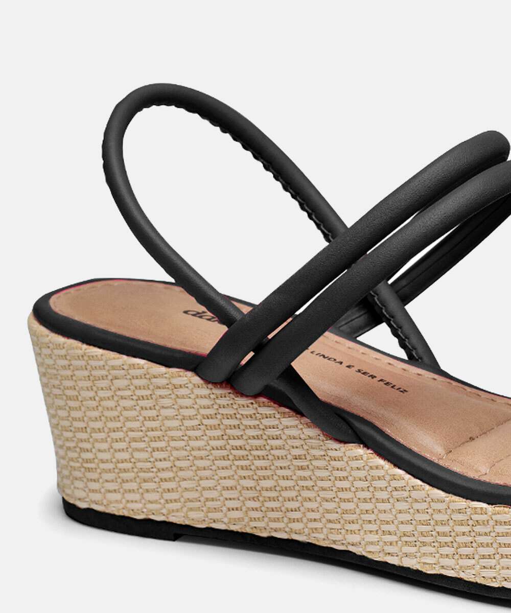 Detalhes adicionais: salto baixo anabela, tiras bicolor