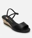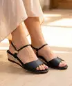 Sandália Anabela Feminina Tiras Preto