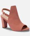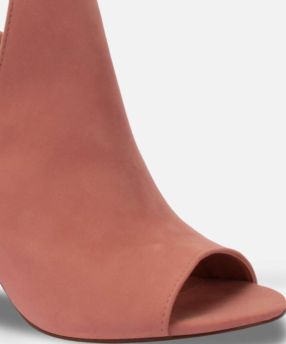 Sandália feminina modelo open boot, confeccionada em nobuck, salto alto grosso, biqueira aberta e fechamento por fivela. Possui palmilha macia com forro, solado flexível, emborrachado com frisos antiderrapantes para garantir maior segurança e conforto ao caminhar.