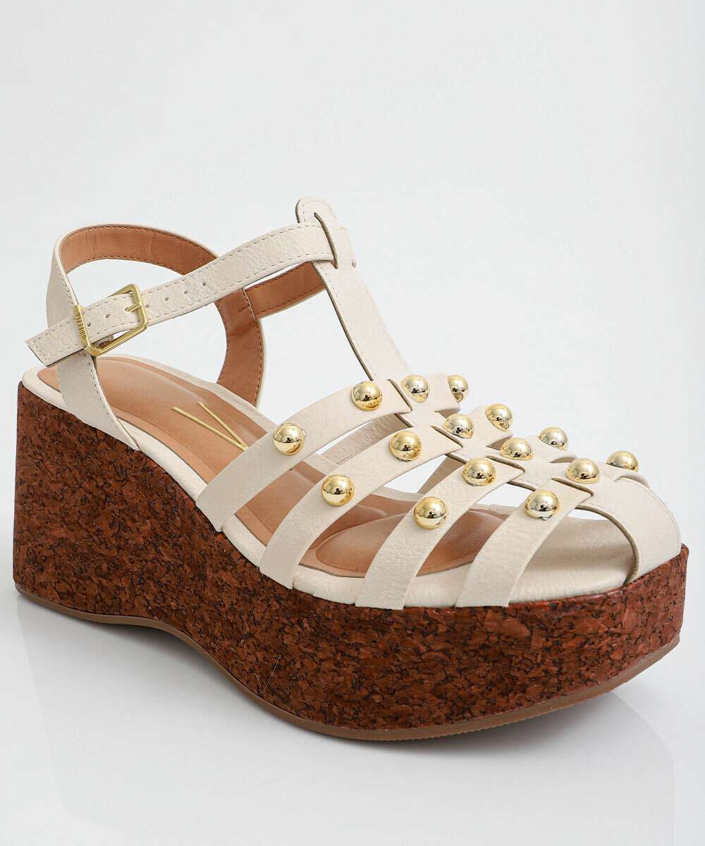 Sandália Feminina Plataforma Tiras Tachas Vizzano
