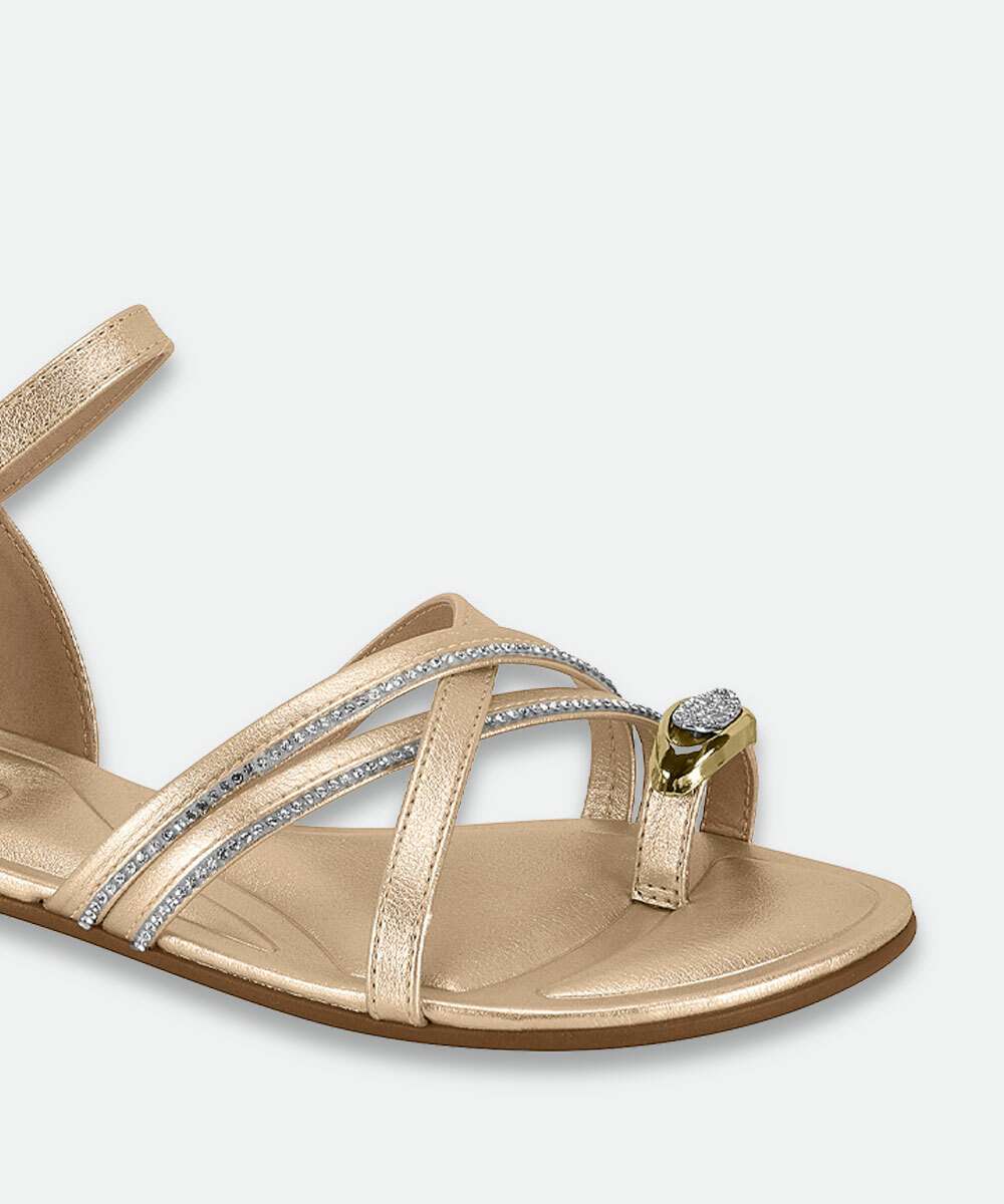 Sandália Feminina Rasteira Metalizada Beira Rio Dourado