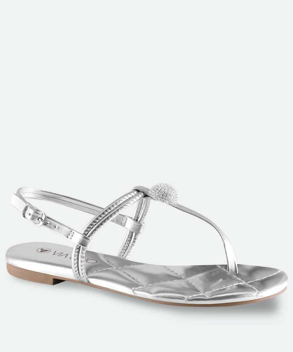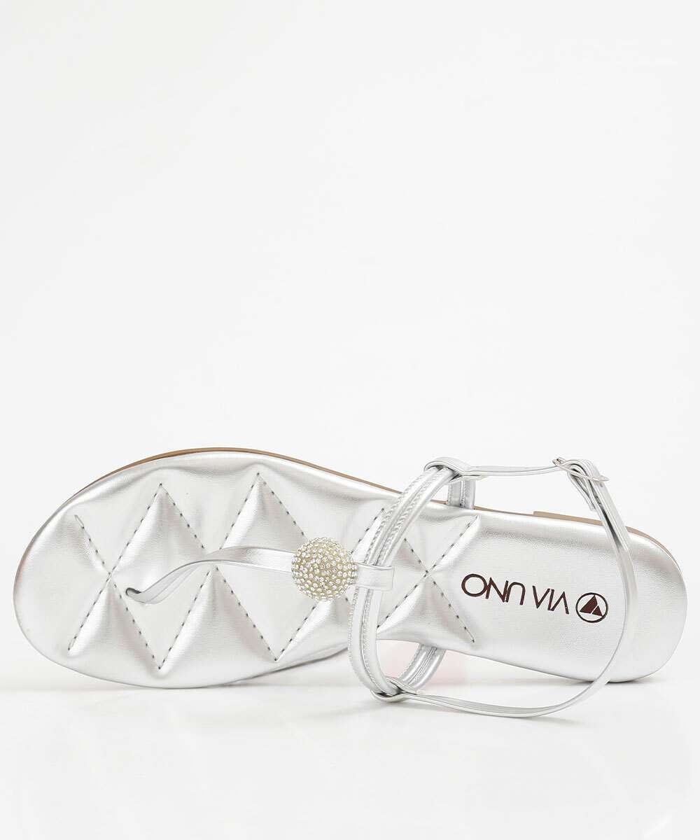 Sandália Feminina Rasteira Metalizada Strass Via Uno