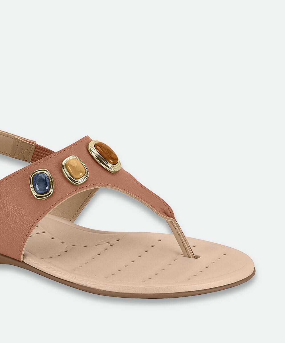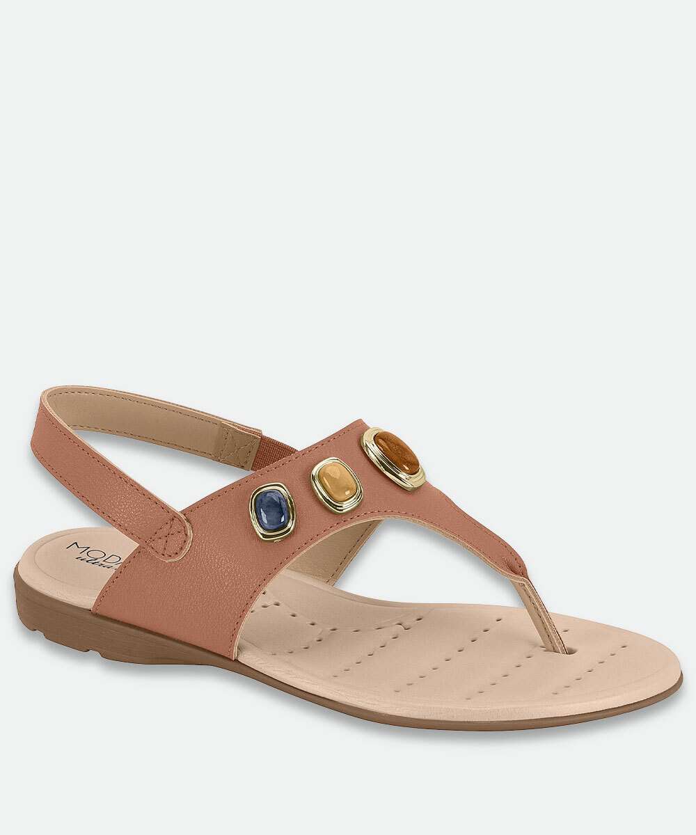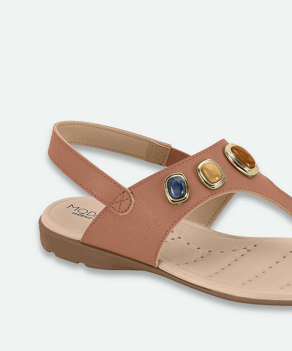 Sandália Feminina Rasteira Pedras Sintéticas Modare Bege