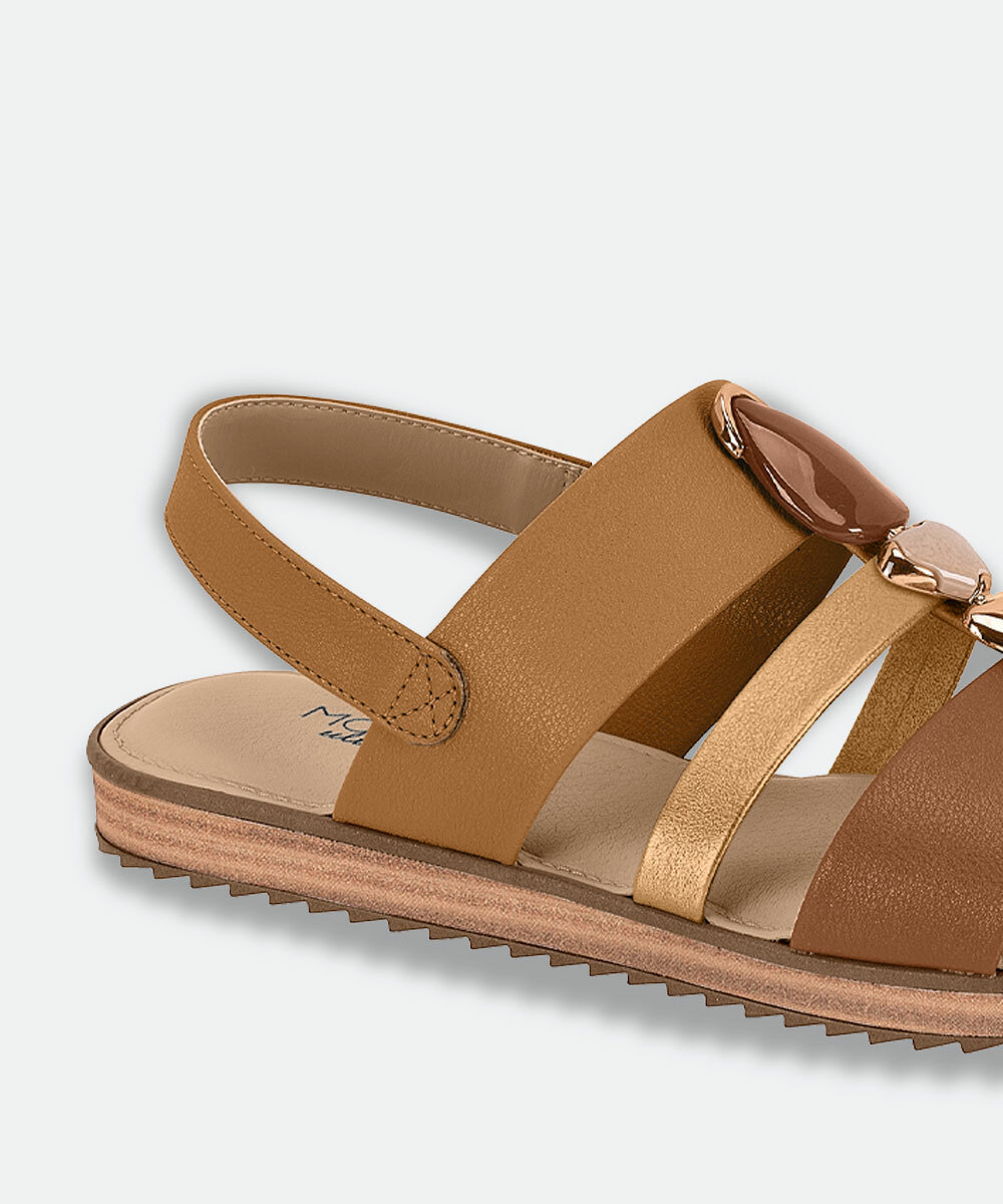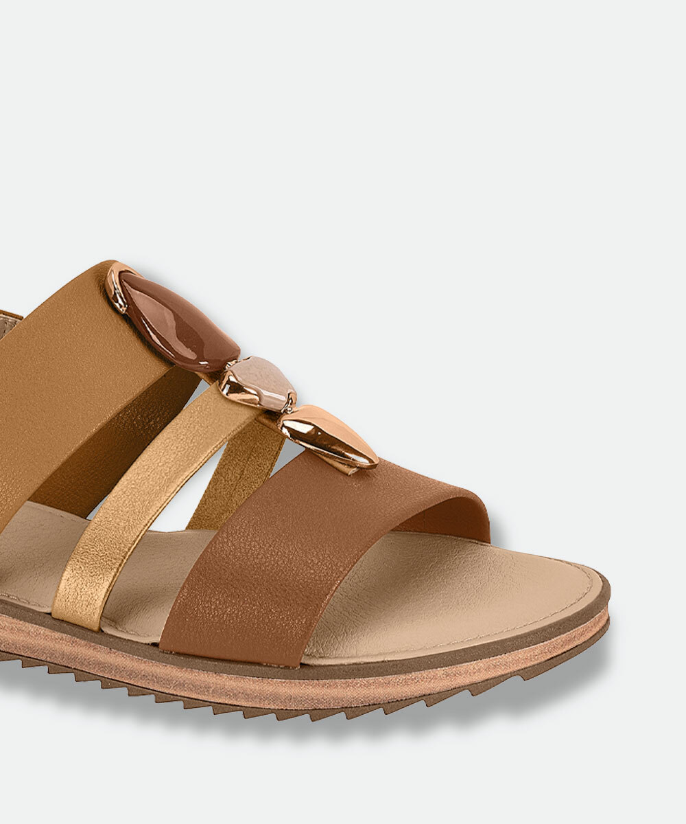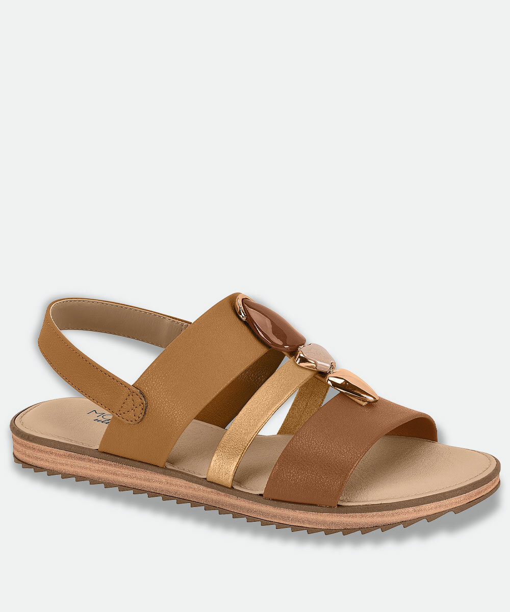 Sandália Feminina Rasteira Pedras Sintéticas Modare Caramelo