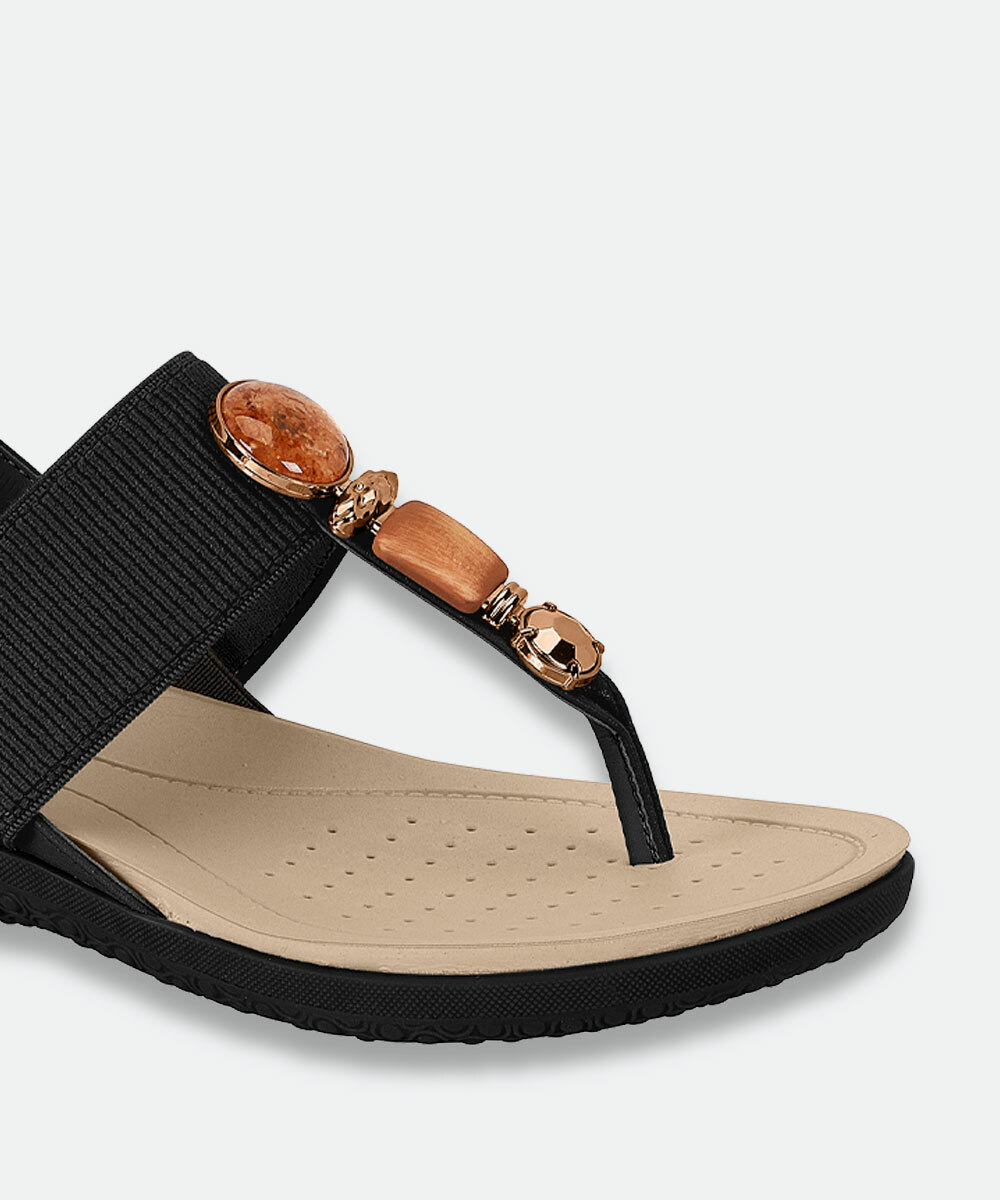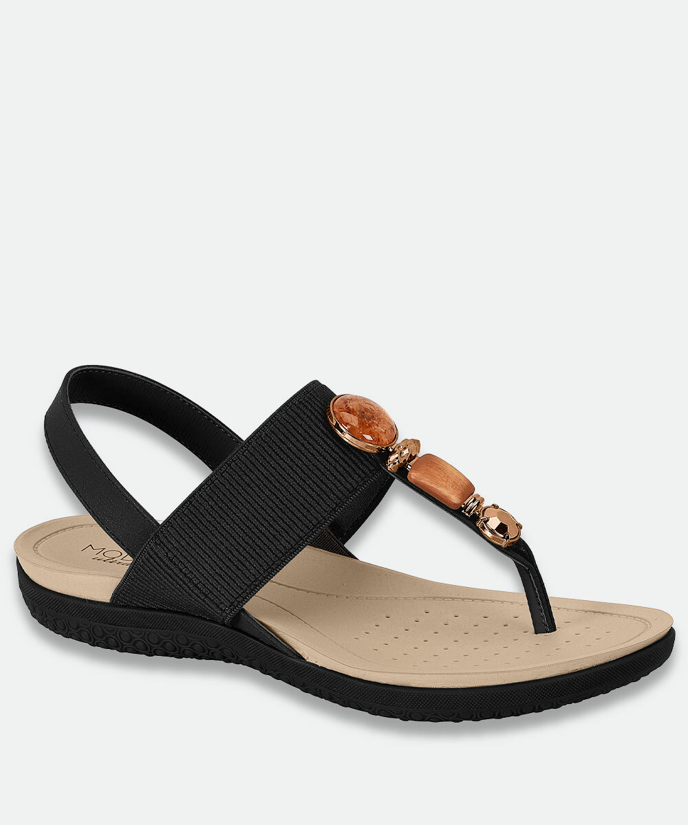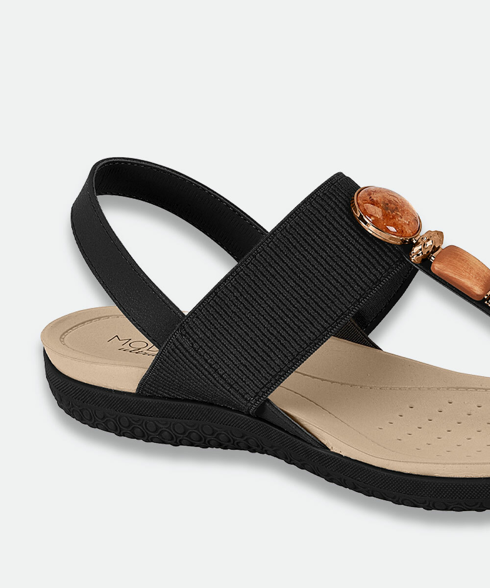 Sandália Feminina Rasteira Pedras Sintéticas Modare Preto