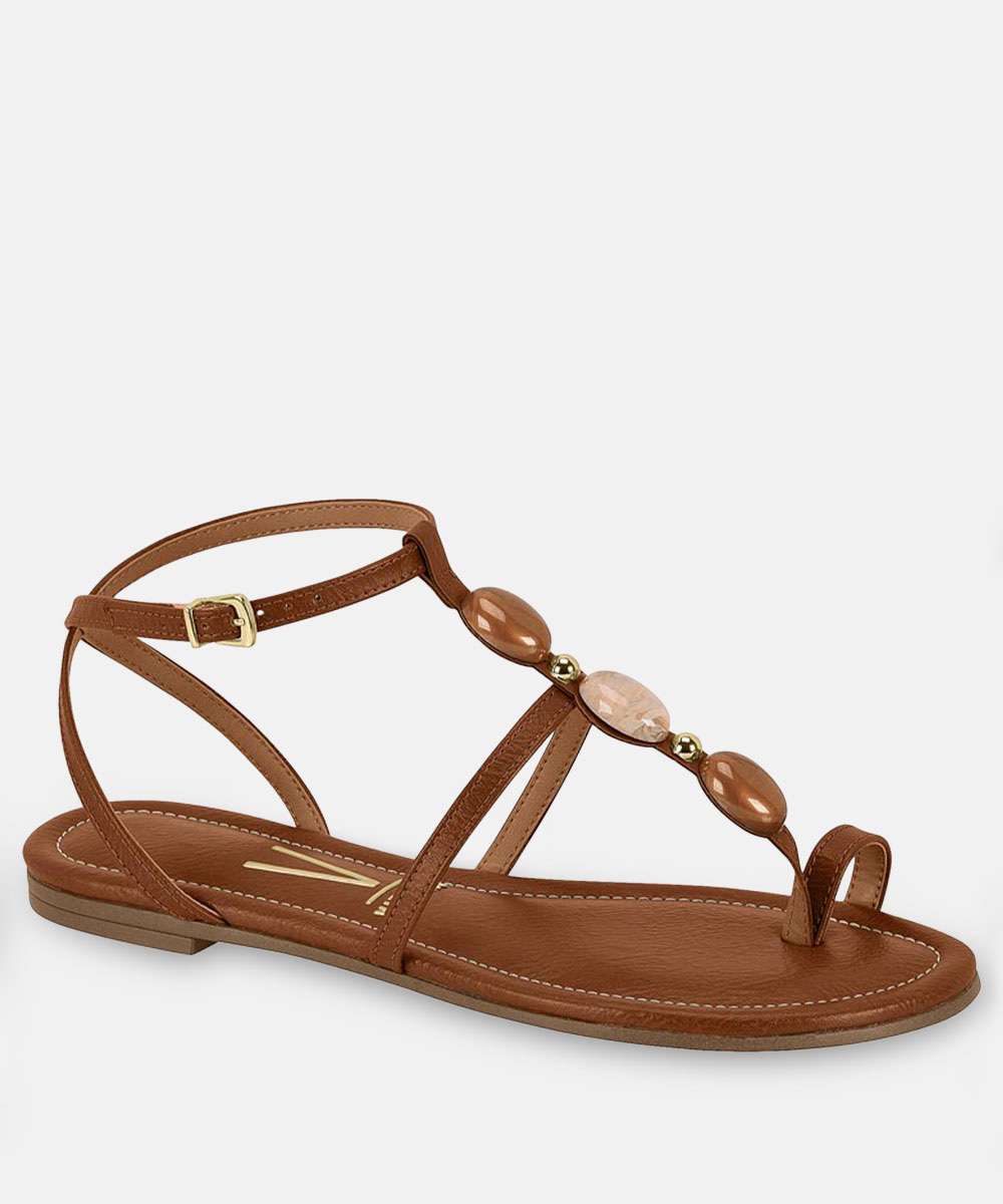 Sandália Feminina Rasteira Pedras Sintéticas Vizzano Caramelo