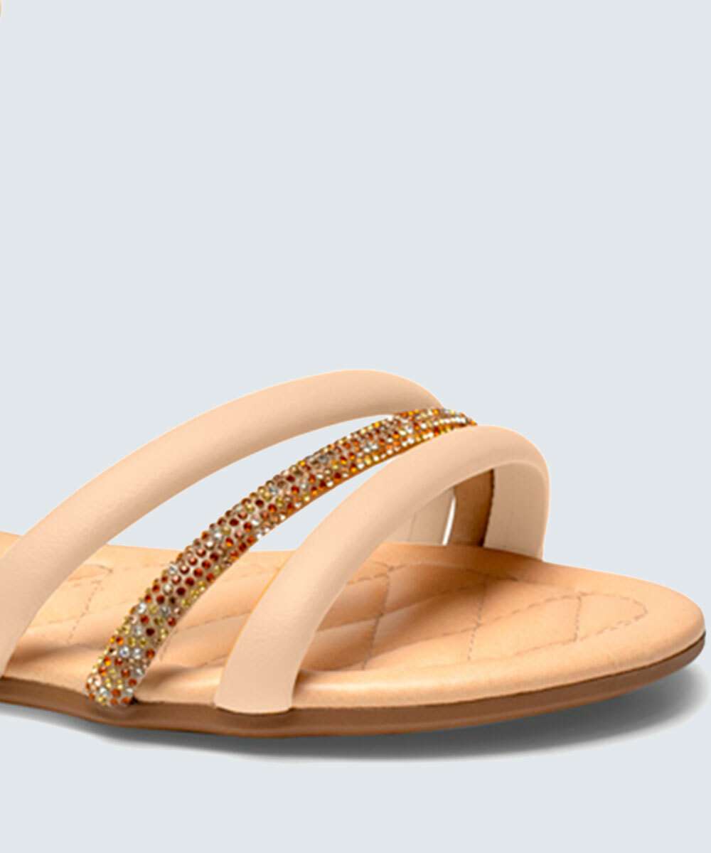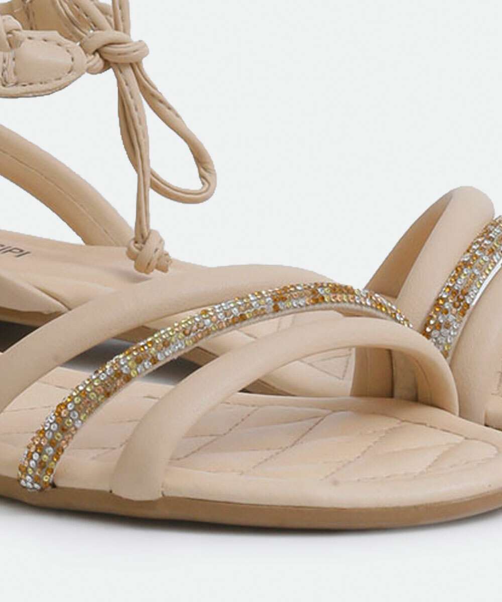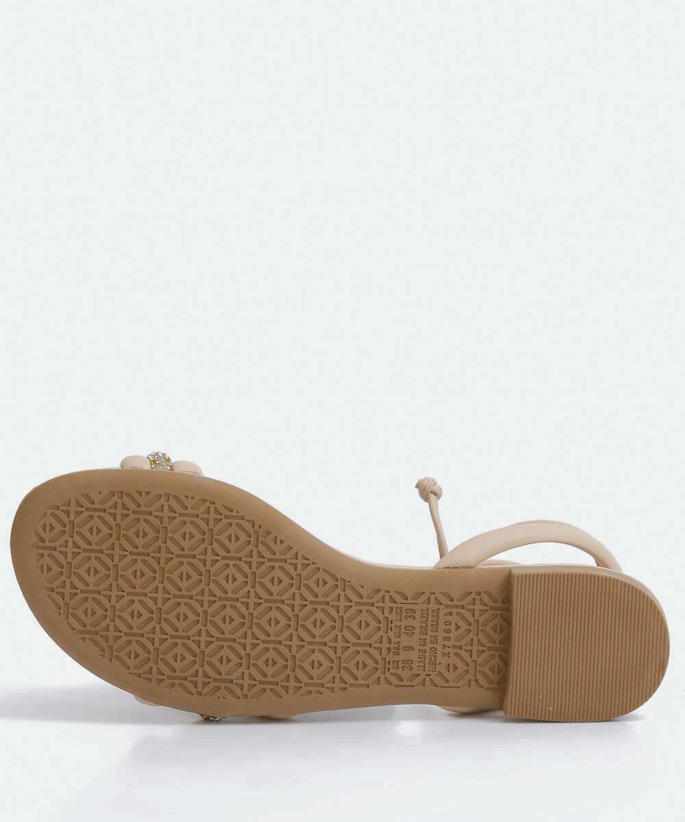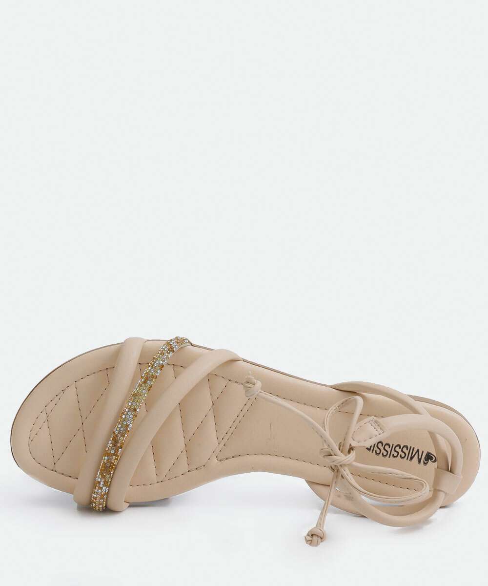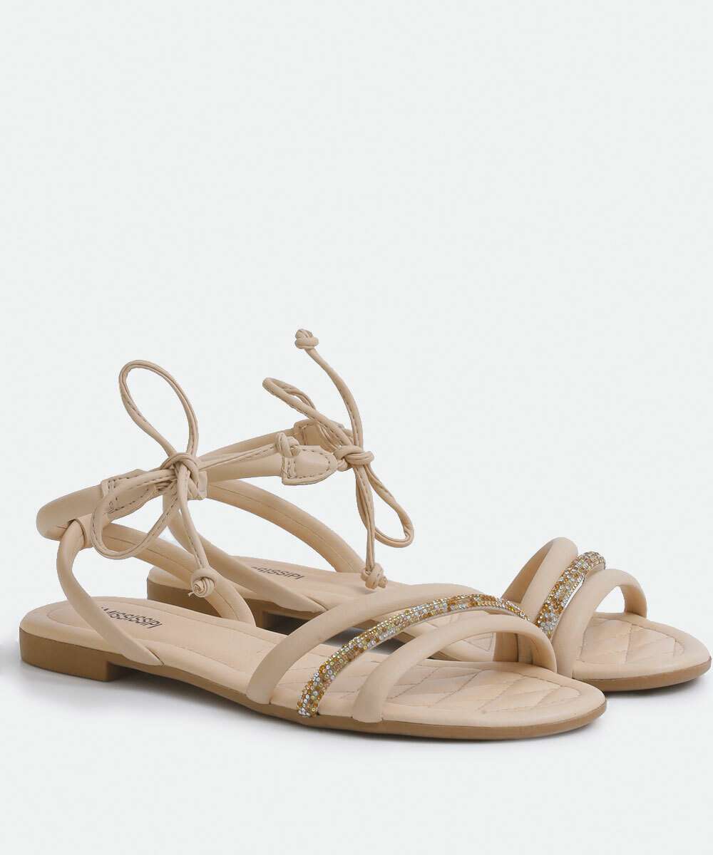Sandália Feminina Rasteira Strass Amarração Mississipi