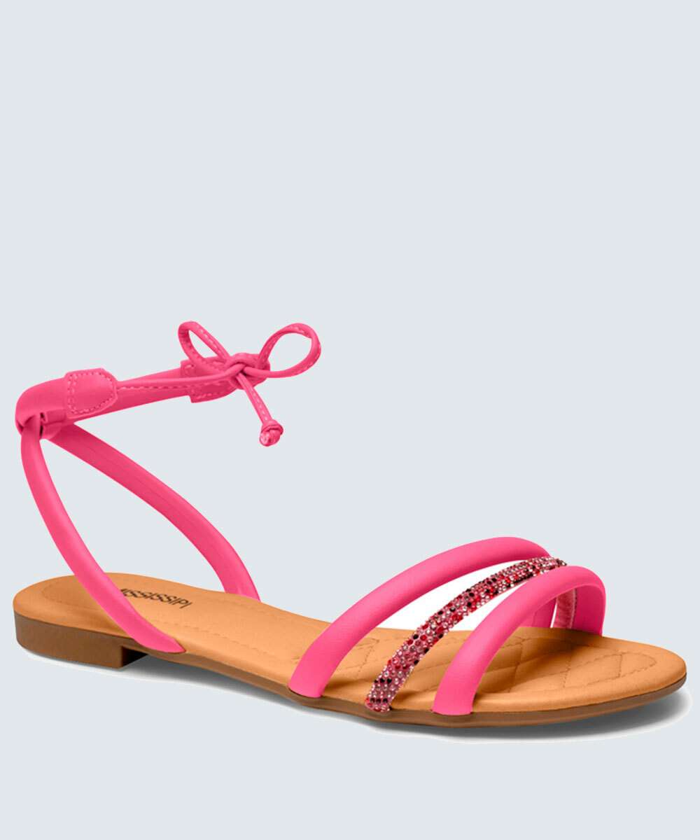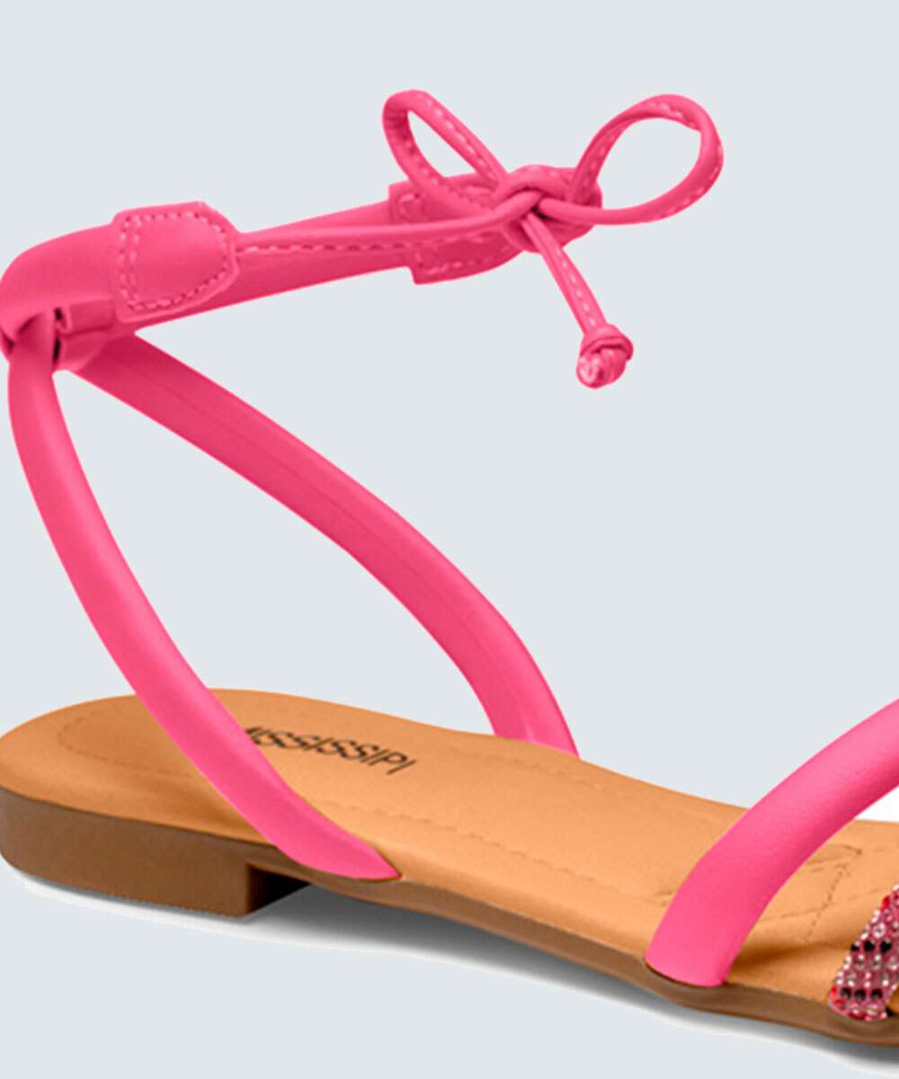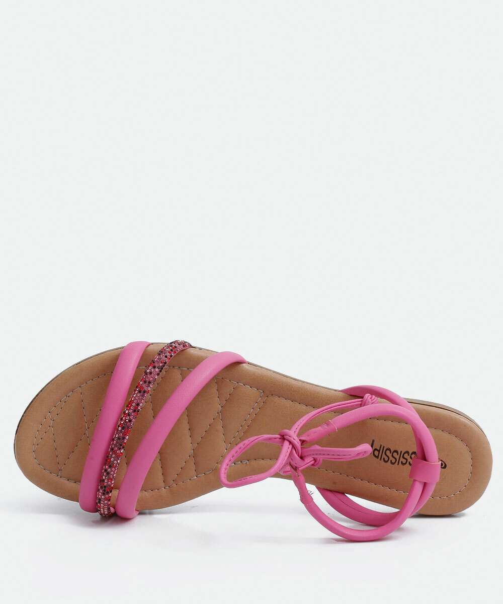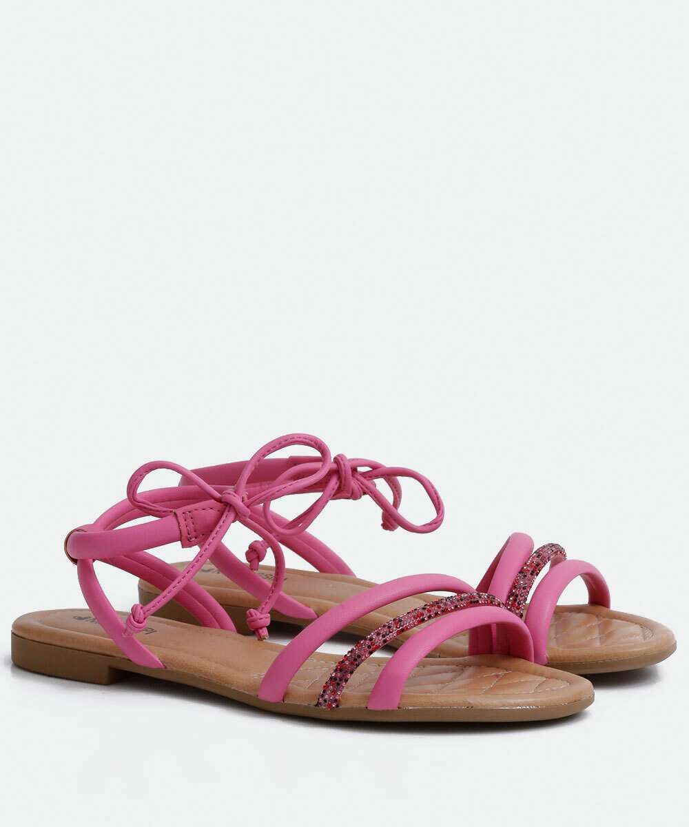 Sandália Feminina Rasteira Strass Amarração Mississipi