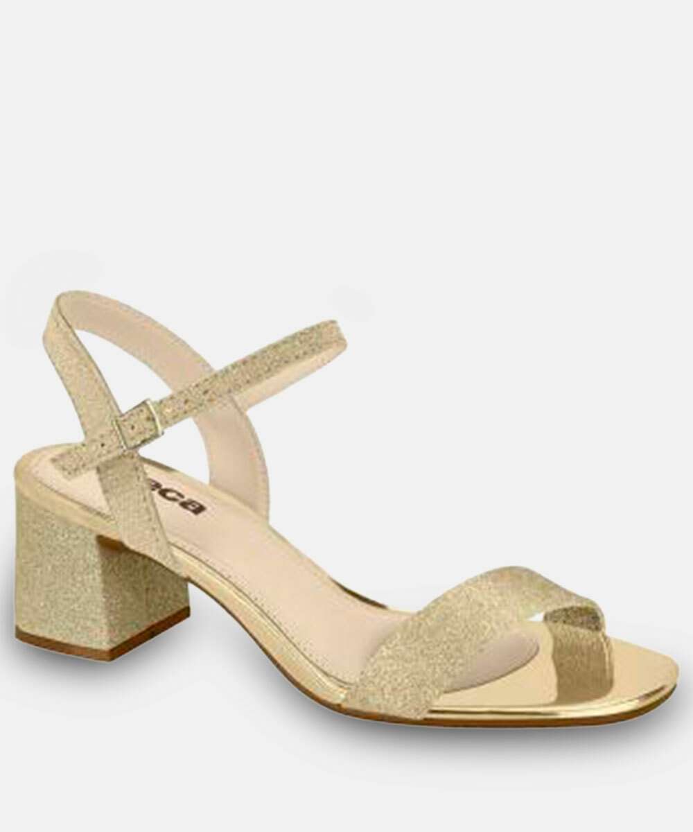 Sandália Feminina Salto Grosso Glitter Beira Rio Dourado
