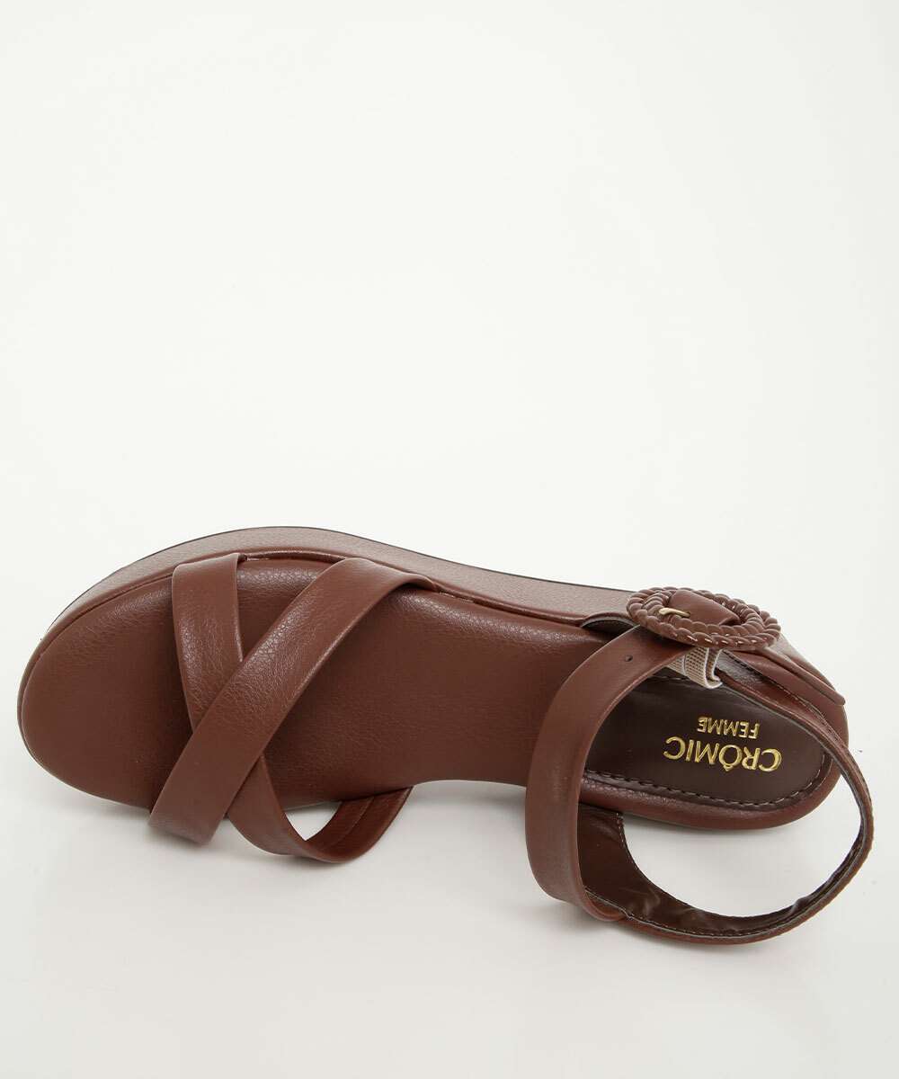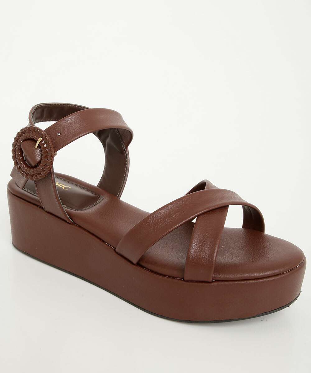 Sandália Flatform Feminina Fivela Tiras Marrom