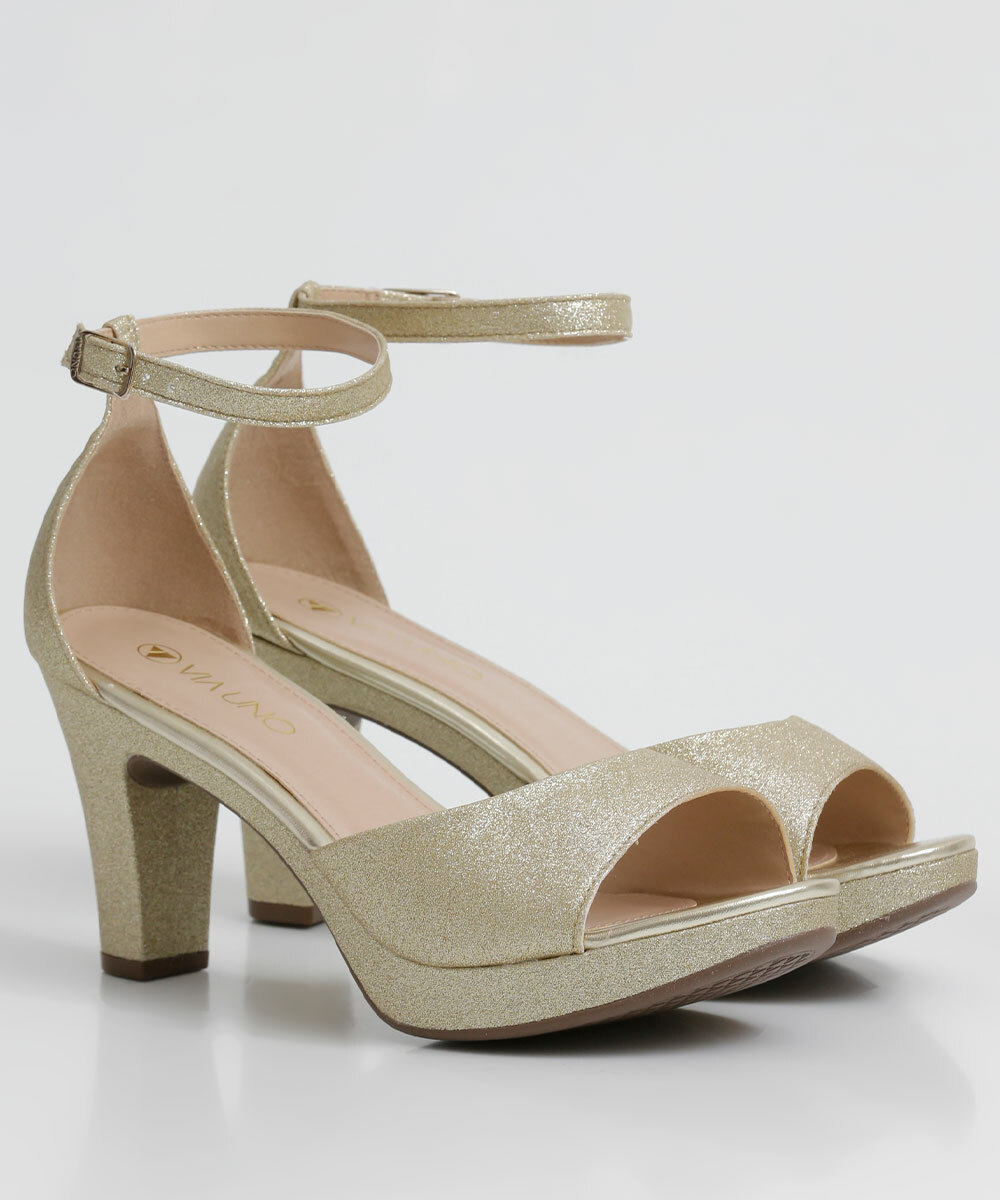 Sandália Meia Pata Feminina Salto Grosso Brilho Via Uno 411003