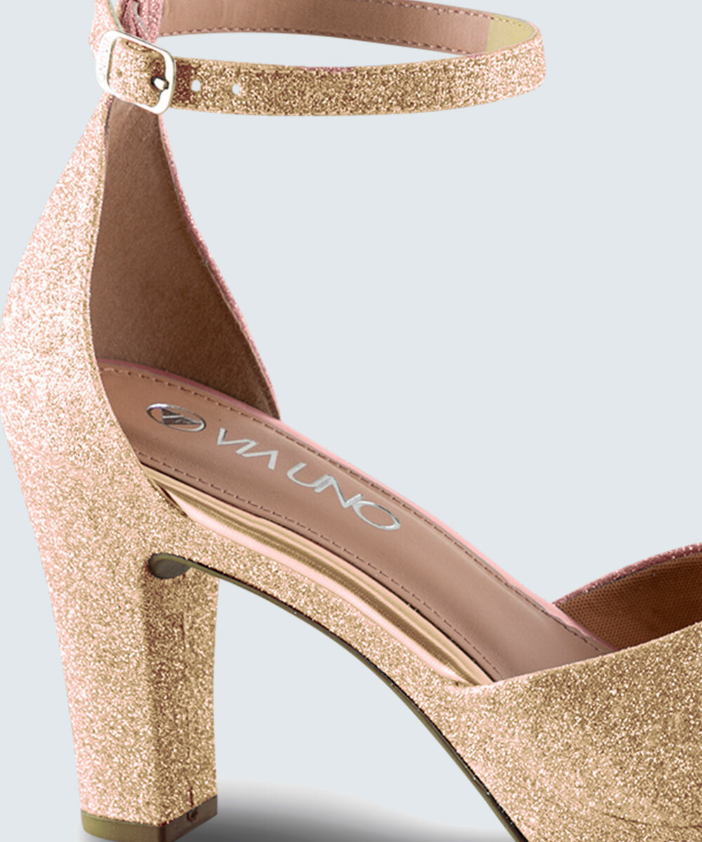 Modelo: Sandália Meia Pata Feminina Salto Grosso Brilho Via Uno 411003