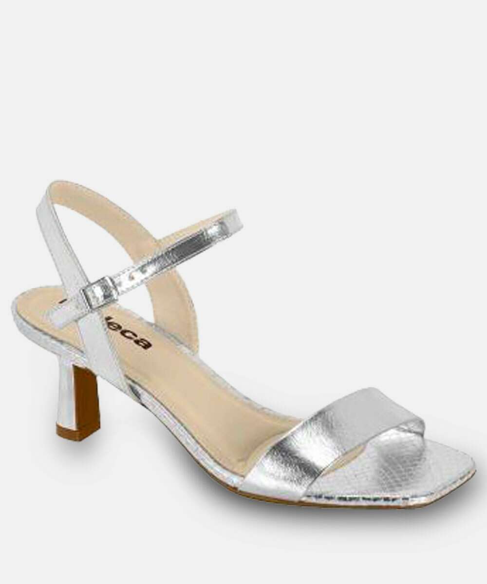 Sandália Salto Fino Feminina Metalizada Moleca Prateado