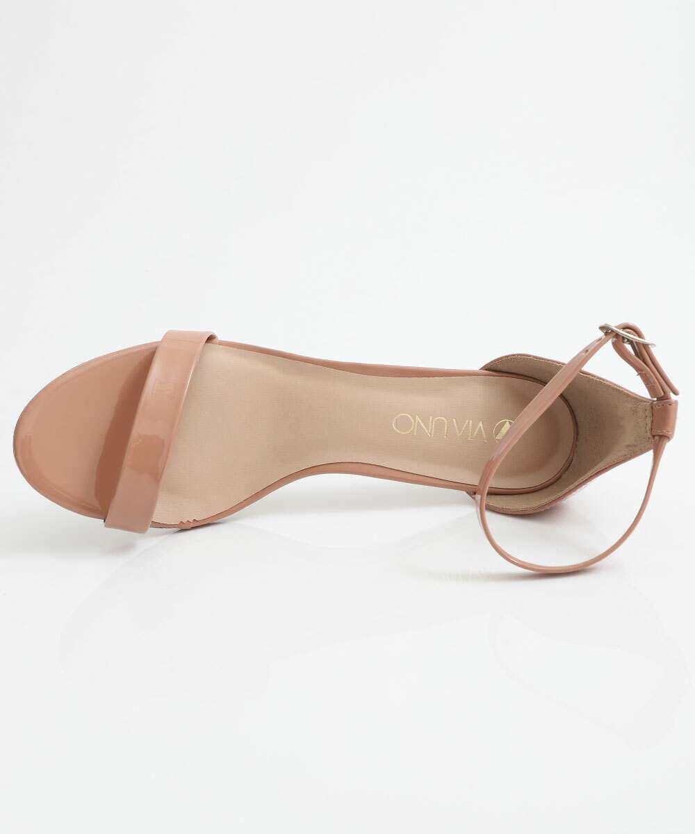 Sandália Salto Fino Feminina Verniz Via Uno Bege