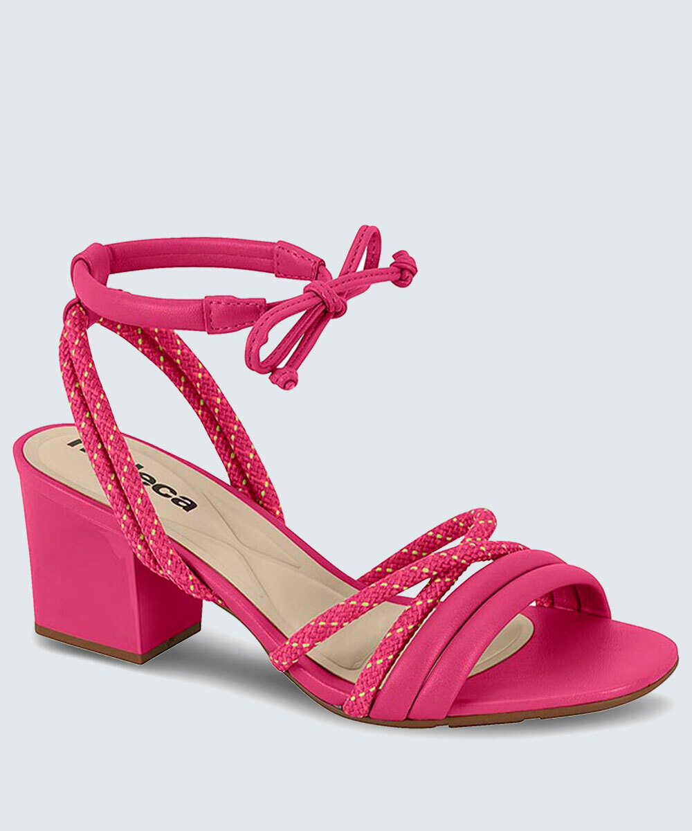 Sandália Salto Grosso Feminina Amarração Moleca