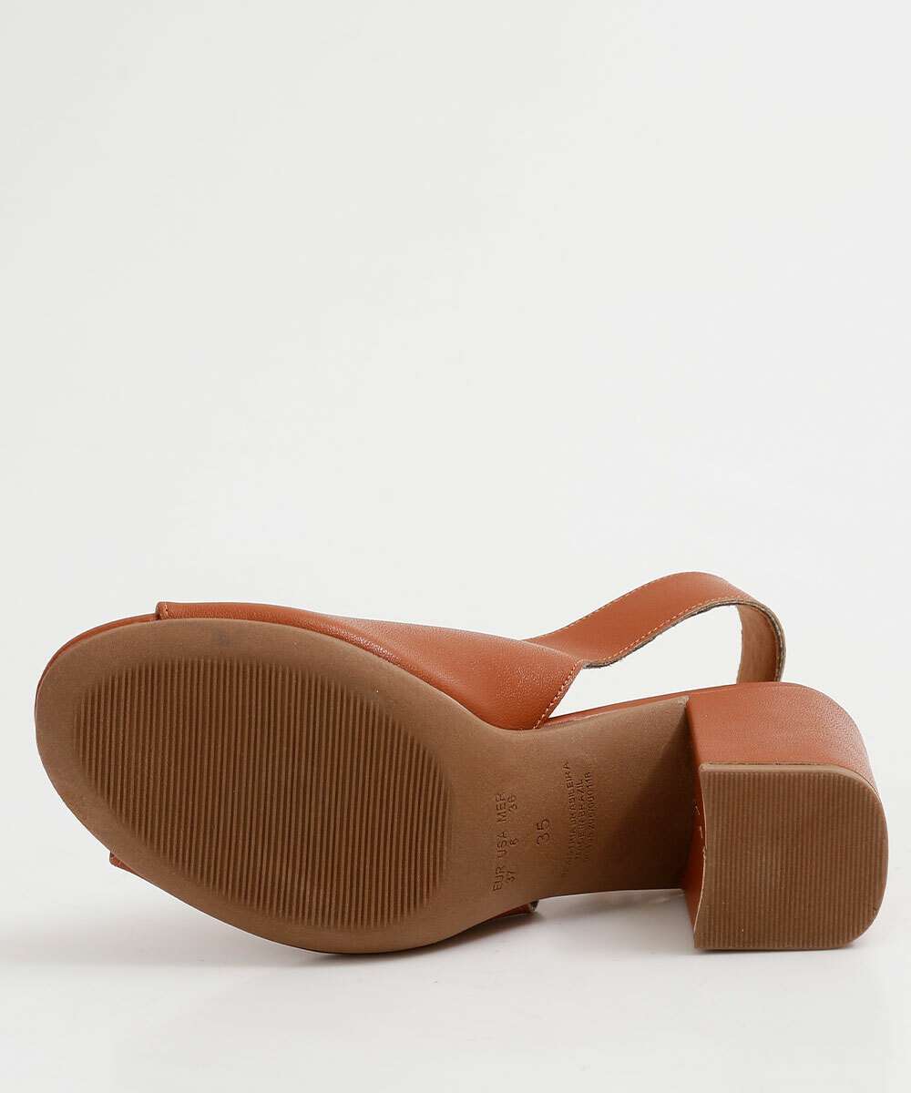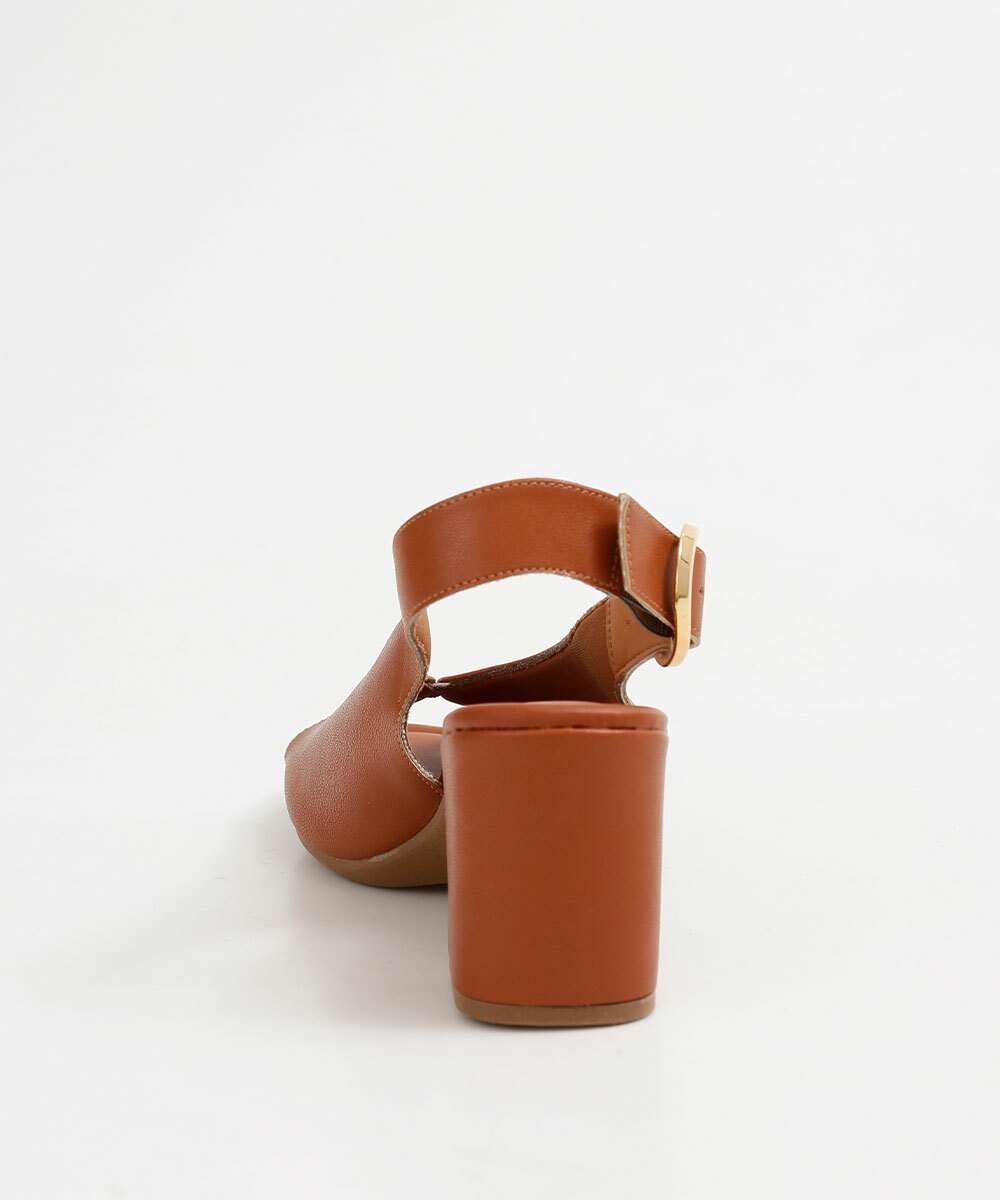 Sandália feminina, confeccionada em material sintético. Possui tiras larga no cabedal, salto grosso e fechamento por tira com fivela ajustável.