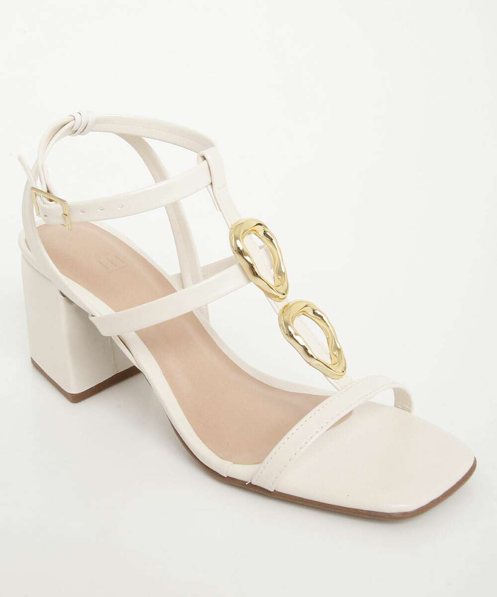 Sandália Salto Grosso Feminina Renata Mello Off White