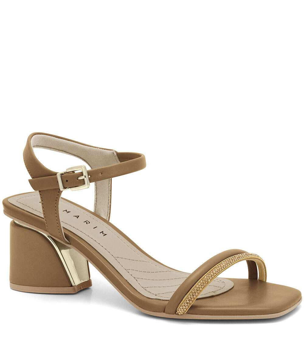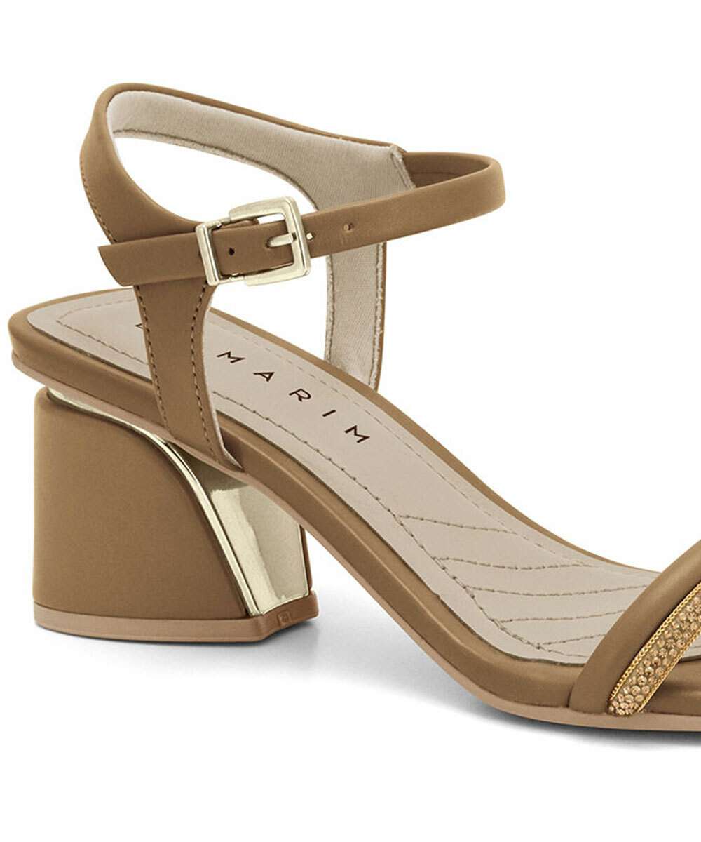 Sandália Salto Grosso Feminina Strass Ramarim Bege 2428202