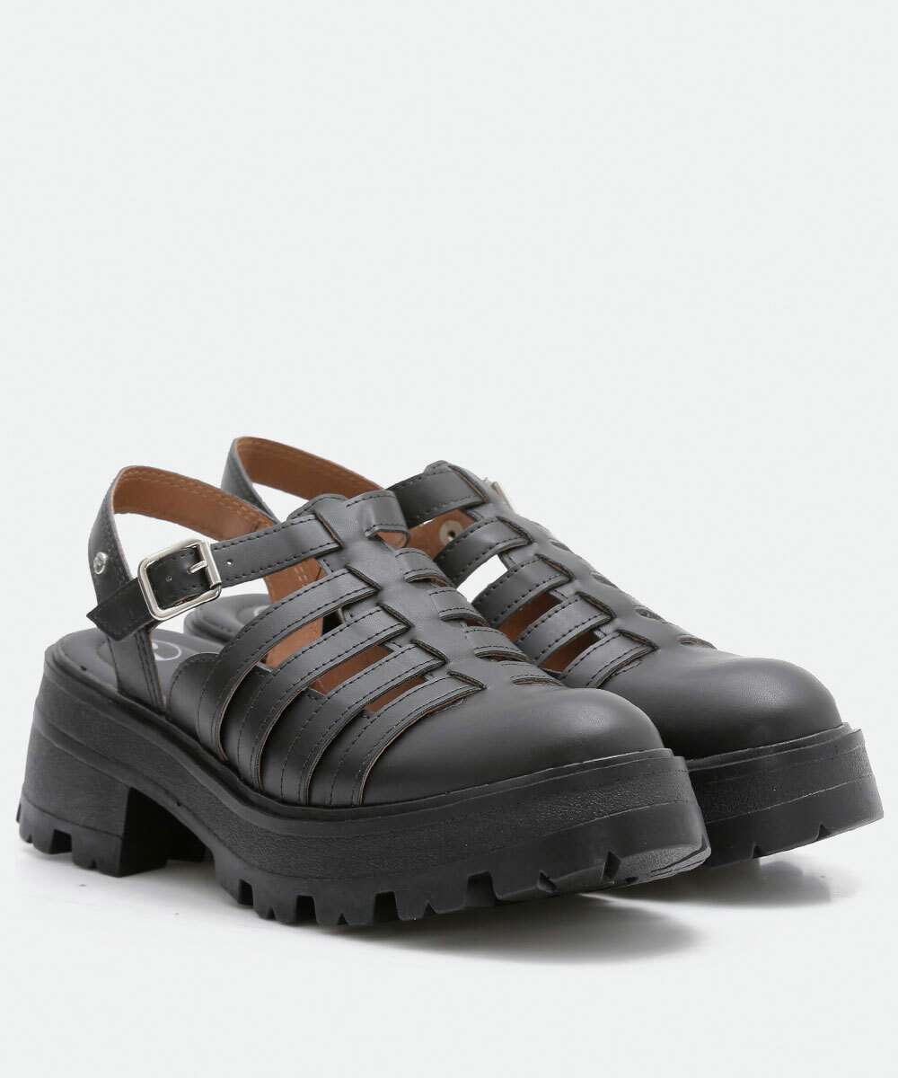 Sandália Salto Grosso Feminina Tratorada Tiras Tanara