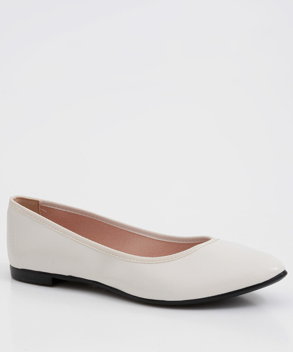 Sapatilha feminina, confeccionada em material sintético com verniz e bico fino. Possui palmilha macia com forro, solado flexível, emborrachado com frisos antiderrapantes para garantir maior segurança e conforto ao caminhar.