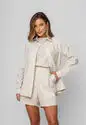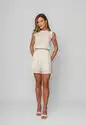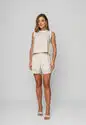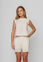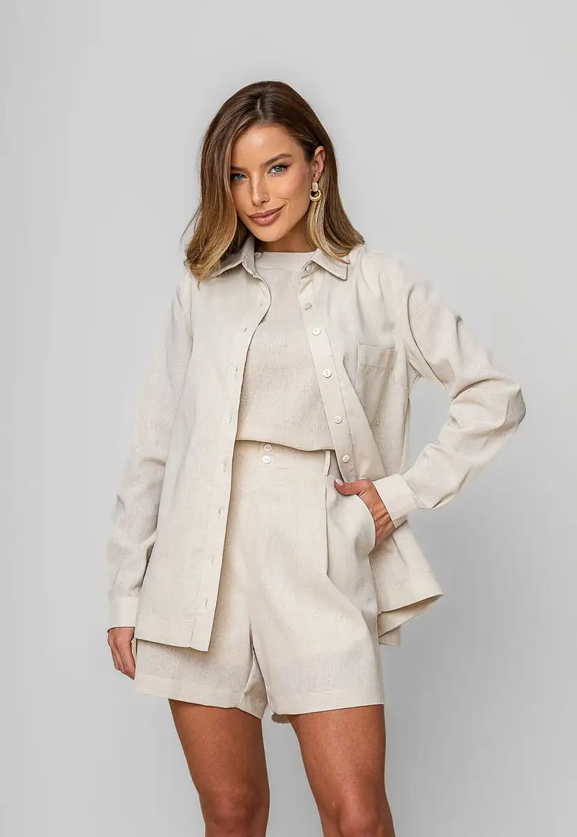 O short alfaiataria é a peça ideal para quem busca sofisticação aliada ao conforto.Confeccionado em tecido leve e encorpado, ele oferece um caimento impecável e um toque suave à pele.Sua modelagem de cintura alta valoriza a silhueta, enquanto as pregas frontais trazem movimento e um ar moderno ao visual.O design clássico é complementado por botões aparentes, além de passantes para cinto e bolsos laterais funcionais que garantem praticidade no dia a dia.Elástico na parte posterior do cós para melhor ajuste. Possui forro.Versátil e atemporal, o short transita facilmente entre produções casuais e elegantes, combinando perfeitamente com blusas, camisas ou tops. • Cintura alta com pregas frontais • Bolsos laterais funcionais • Passantes para cinto • Caimento estruturado e confortável • Possui forro Medidas da modelo: Altura 1,73cm | Busto 86cm | Cintura 67cm | Quadril 99cmModelo veste P.Composição: 70% Viscose, 30% Linho. Forro: 100% Poliéster.