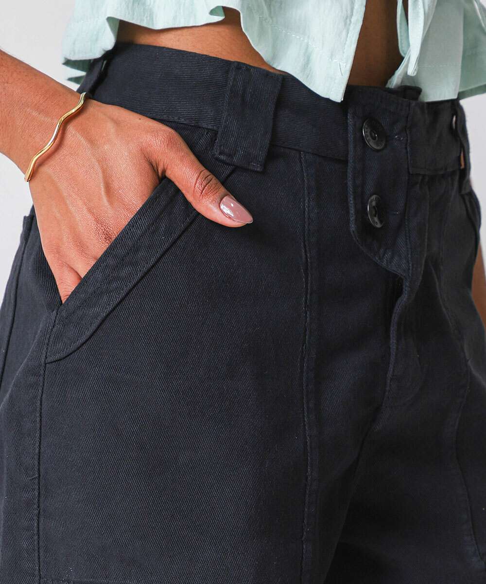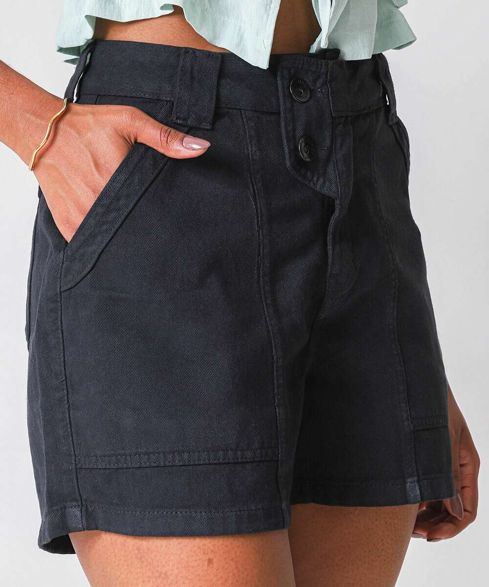 Short Feminino Sarja Bolsos Cintura Alta Preto