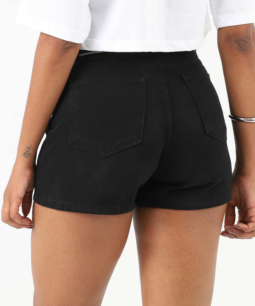 Short Feminino Sarja Cordão Cintura Alta Preto