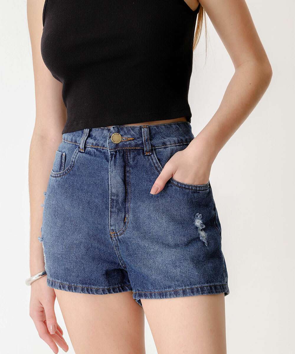Short Jeans Feminino Bolsos Puídos