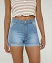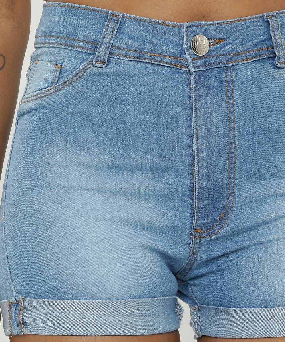 Short Jeans Feminino Cintura Alta Barra Dobrada