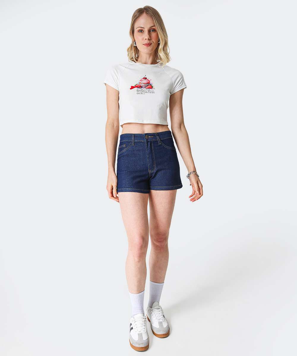 Short Jeans Feminino Cintura Alta Bolsos