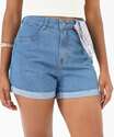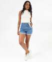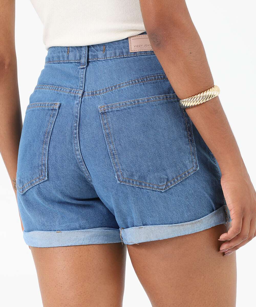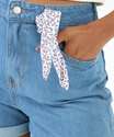Short Jeans Feminino Lenço Barra Dobrada Azul