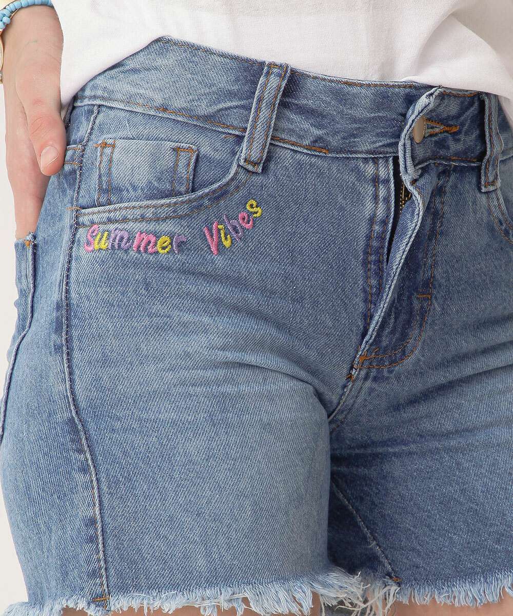 Short Juvenil Jeans Bordado Barra Desfiada Tam 10 a 16