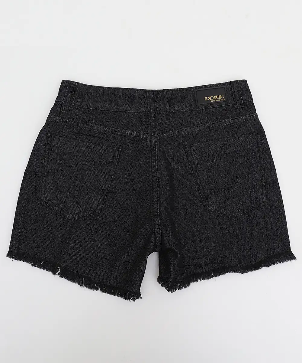 Short Juvenil Jeans Strass Tam 10 a 16 Preto
