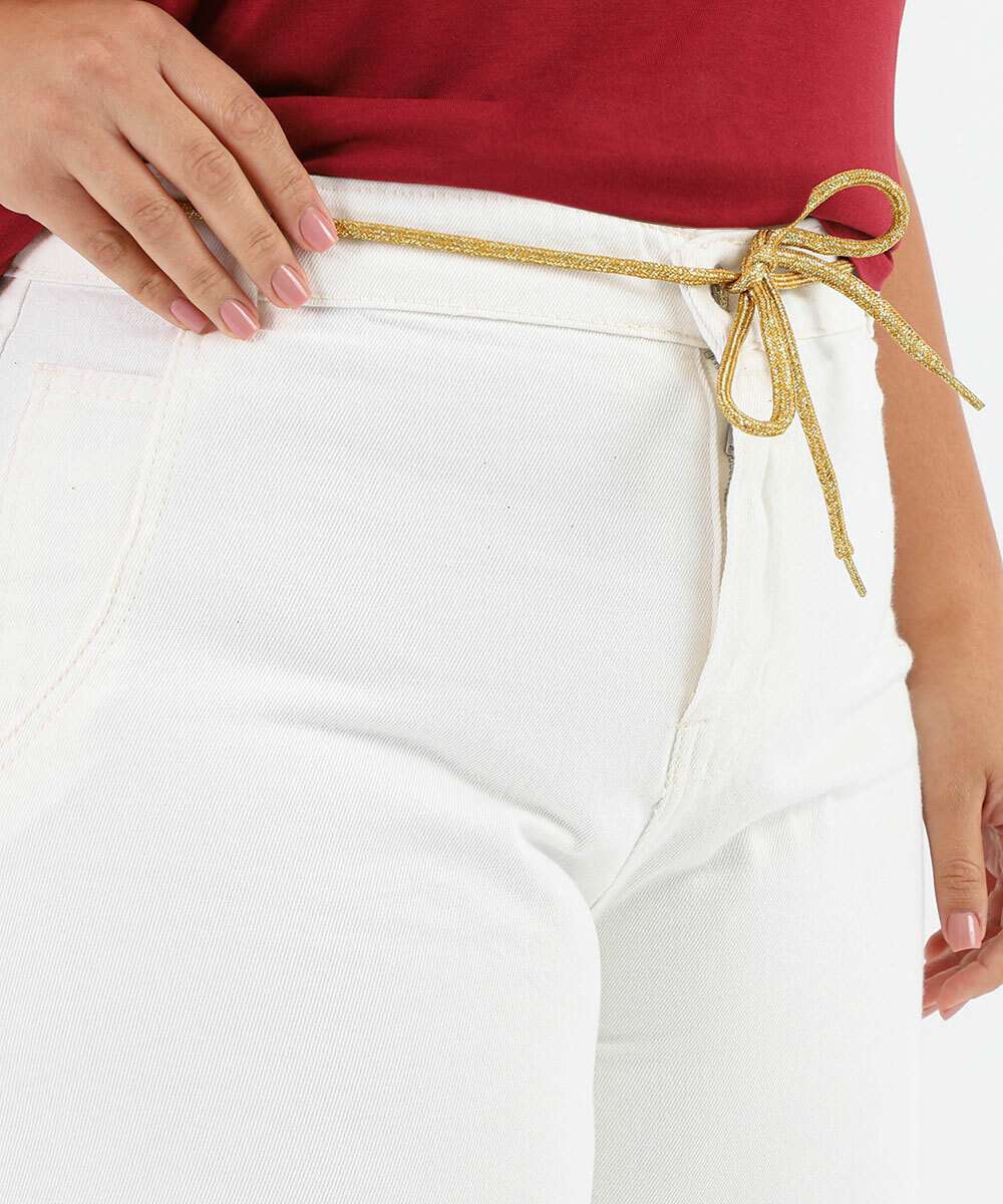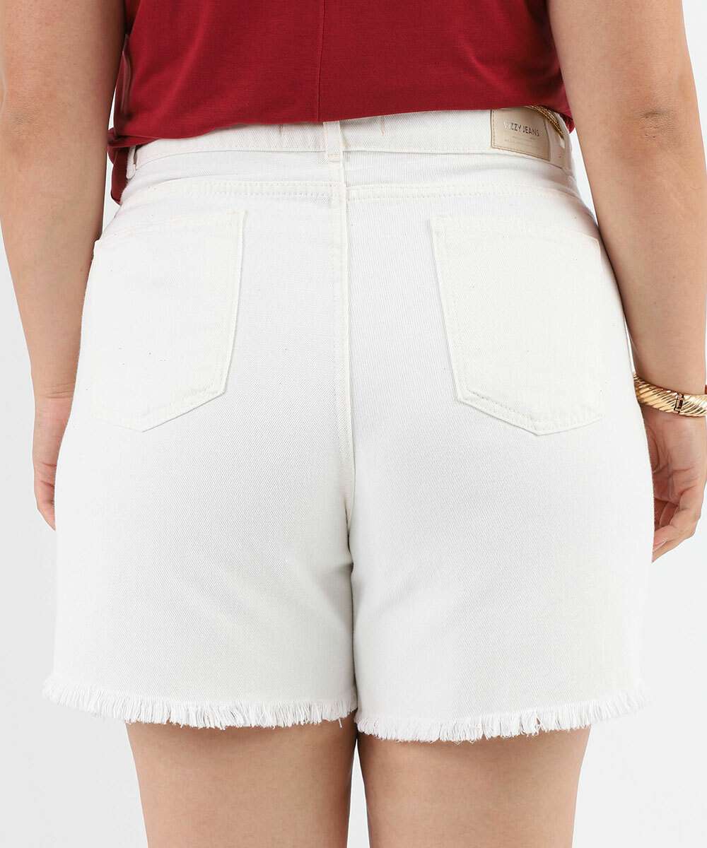 Short Plus Size Sarja Feminino Barra Desfiada Off White