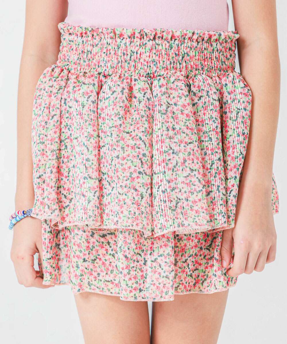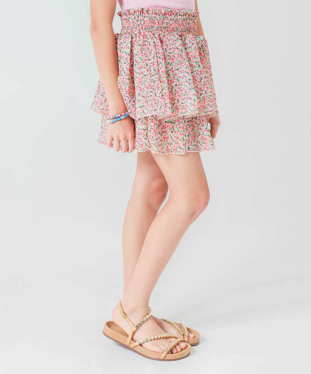 Short Saia Juvenil Floral Babados Marisa Tam 10 a 16 Rosa