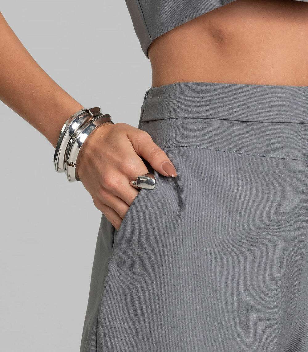 Shorts Feminino Cós Alto Em Alfaiataria Dianna Cinza