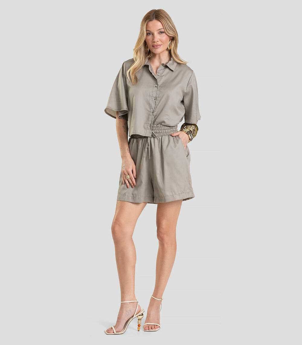 Shorts Feminino em Tecido Plano Dianna Cinza
