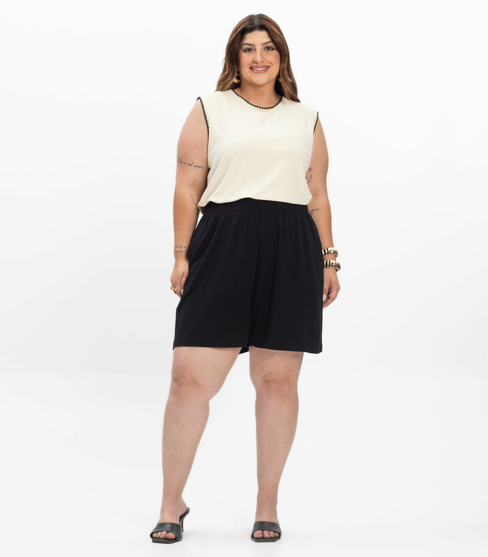 Shorts Feminino Plus Size Com Bolsos Secret Glam Preto