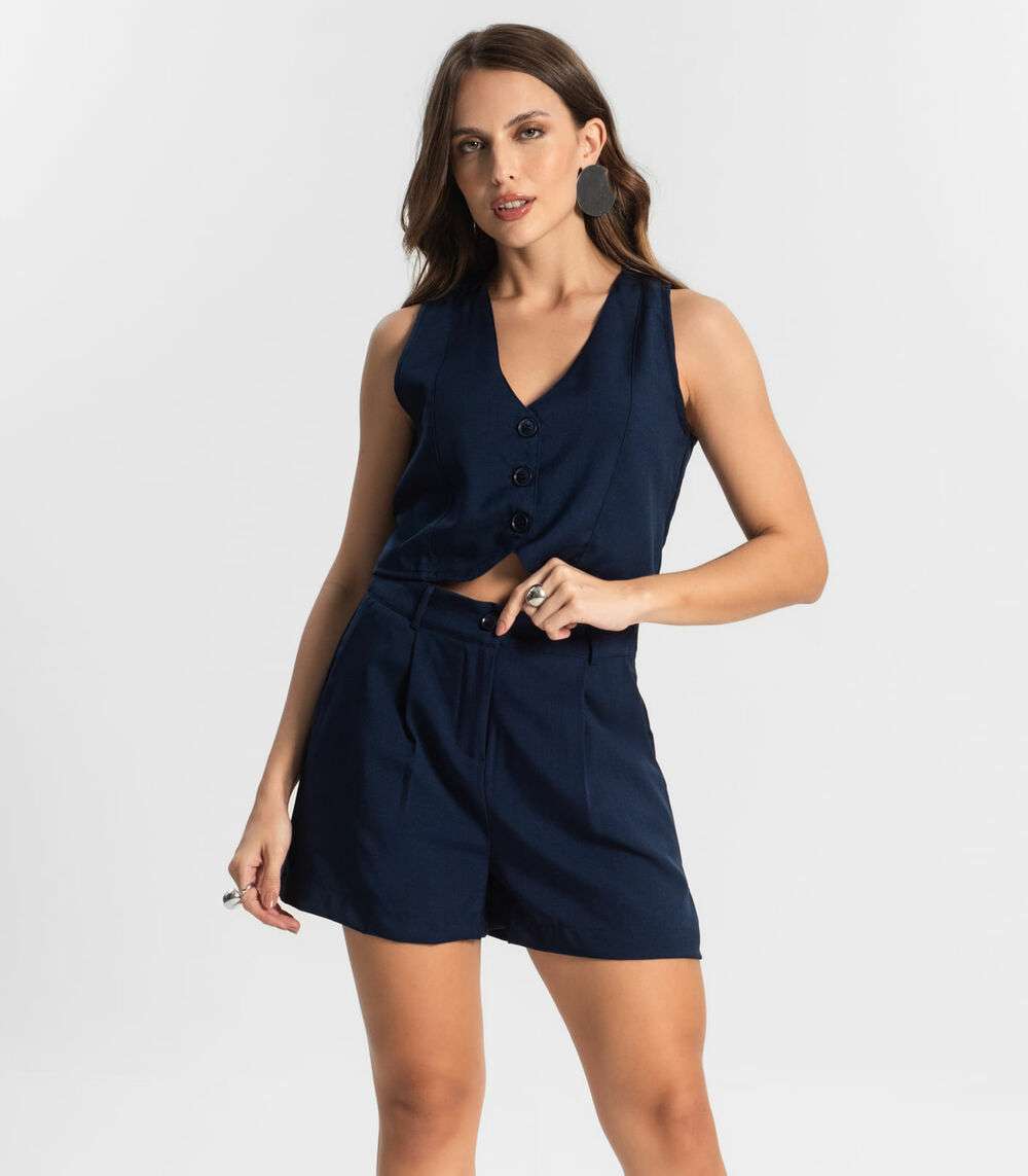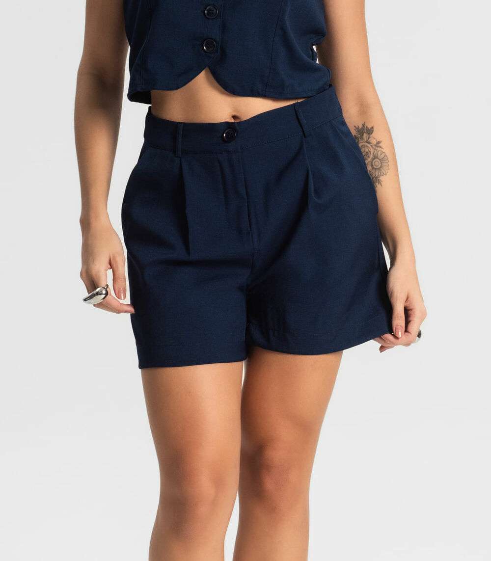Shorts Feminino Reto Em Alfaiataria Style Box Azul