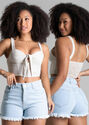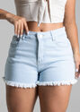 Short feminino desenvolvido em jeans A modelagem tem quadril soltinho. Bolsos frontais e posteriores funcionais O cós tem passantes e fechamento por zíper e botão A barra tem acabamento desfiado. Tecido: jeans Tipo de lavagem: Azul médio Cor: Azul