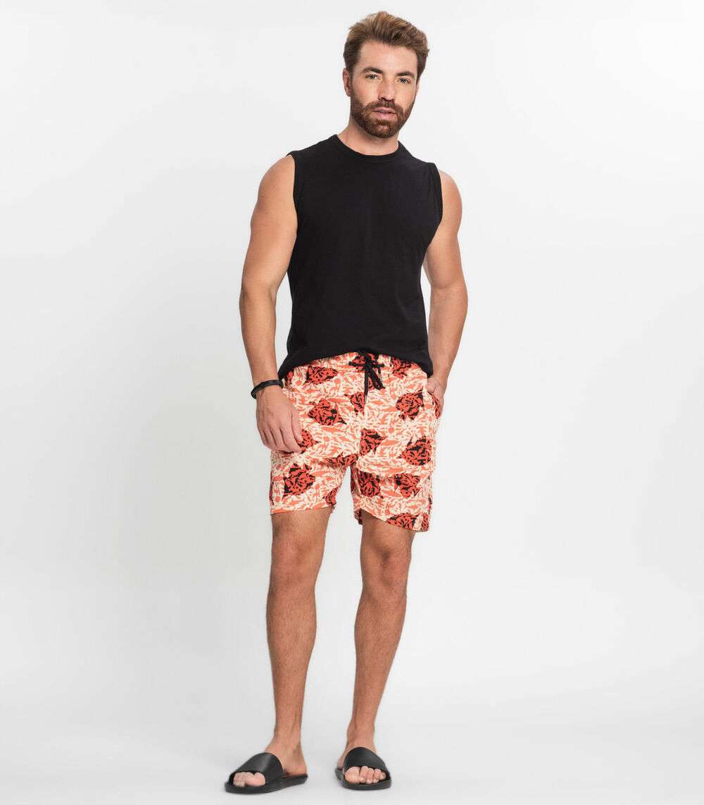 Shorts Masculino Estampado Microfibra Rovitex Laranja