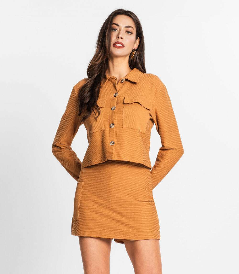 Shorts Saia Feminino Em Moletinho Endless Marrom